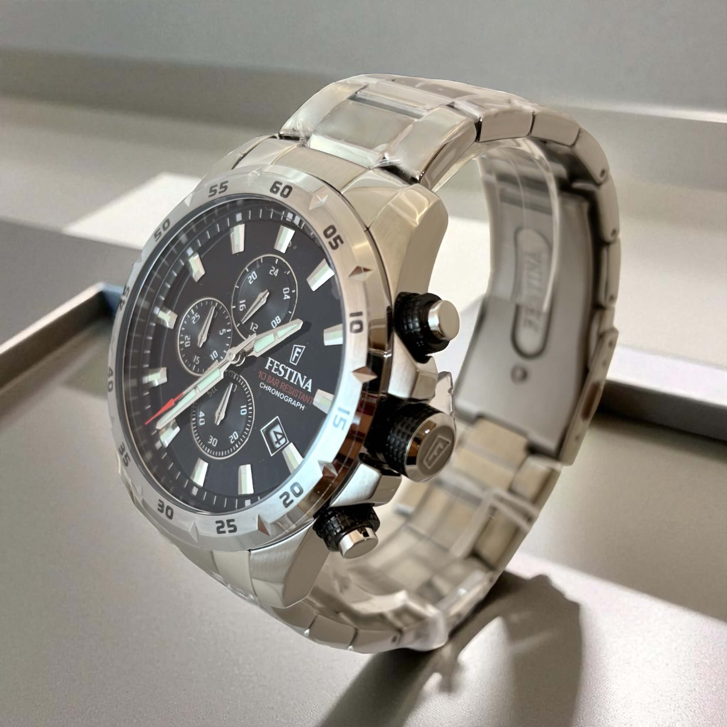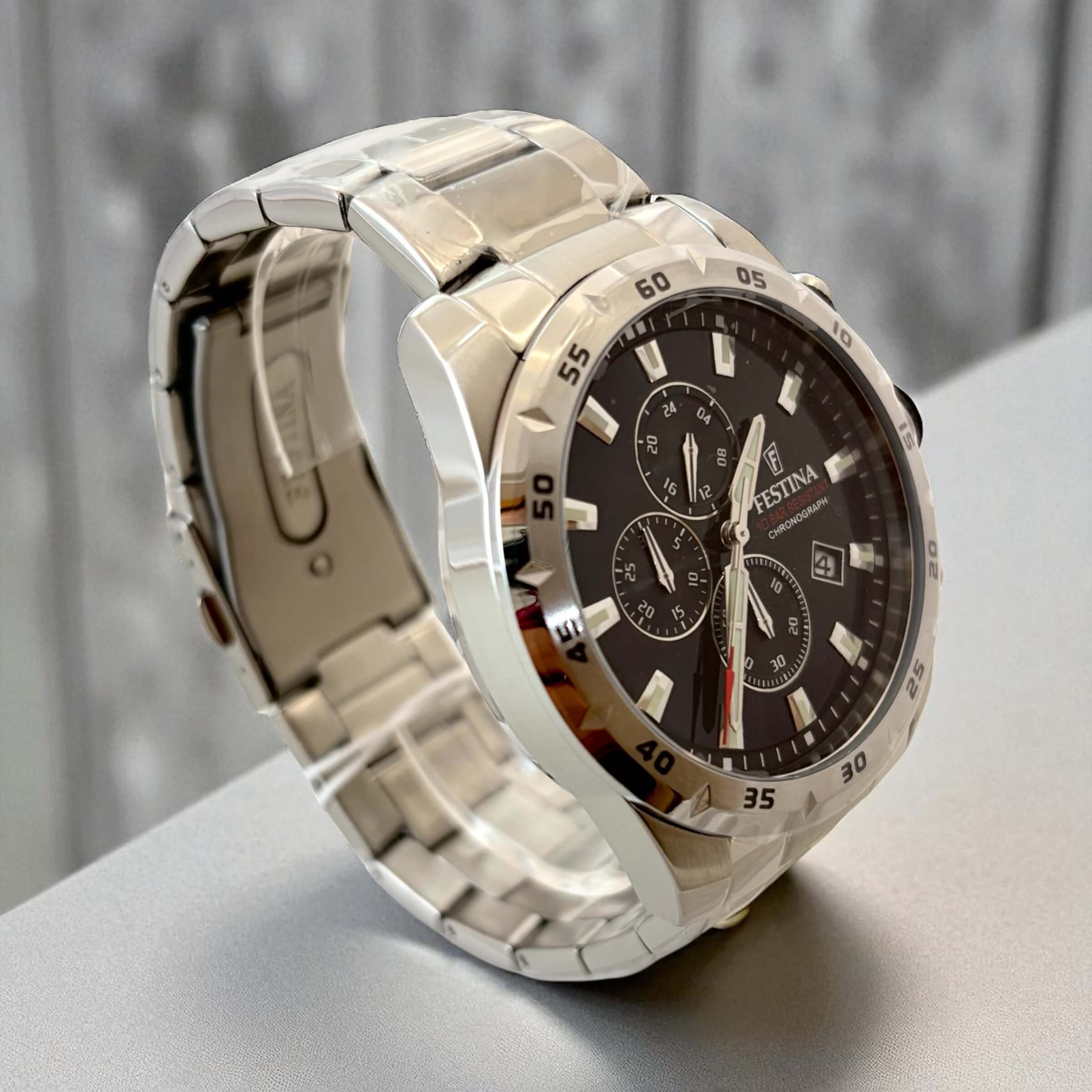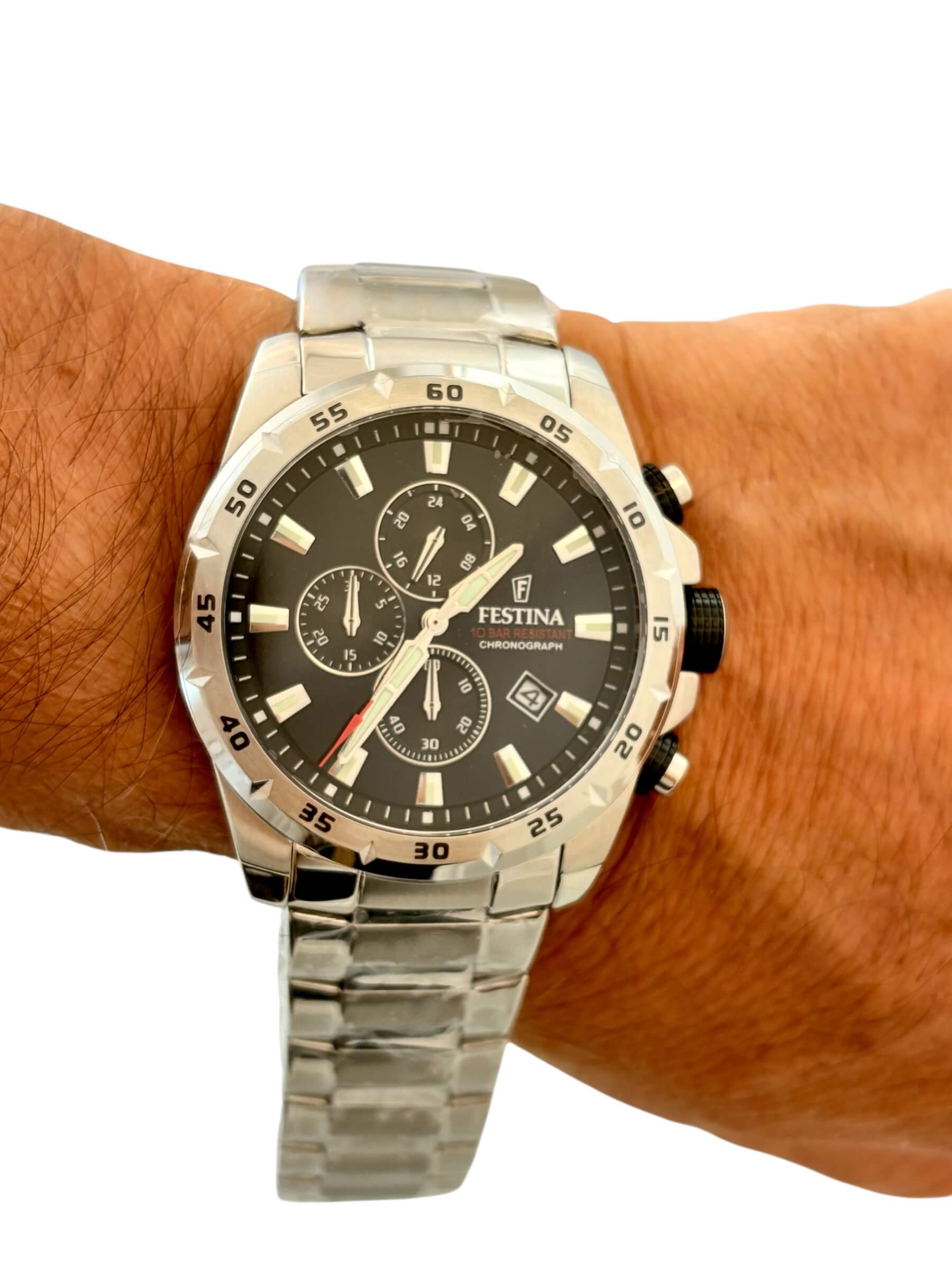 Ανδρικό ρολόι Festina με ασημί μπρασελέ και μαύρο καντράν