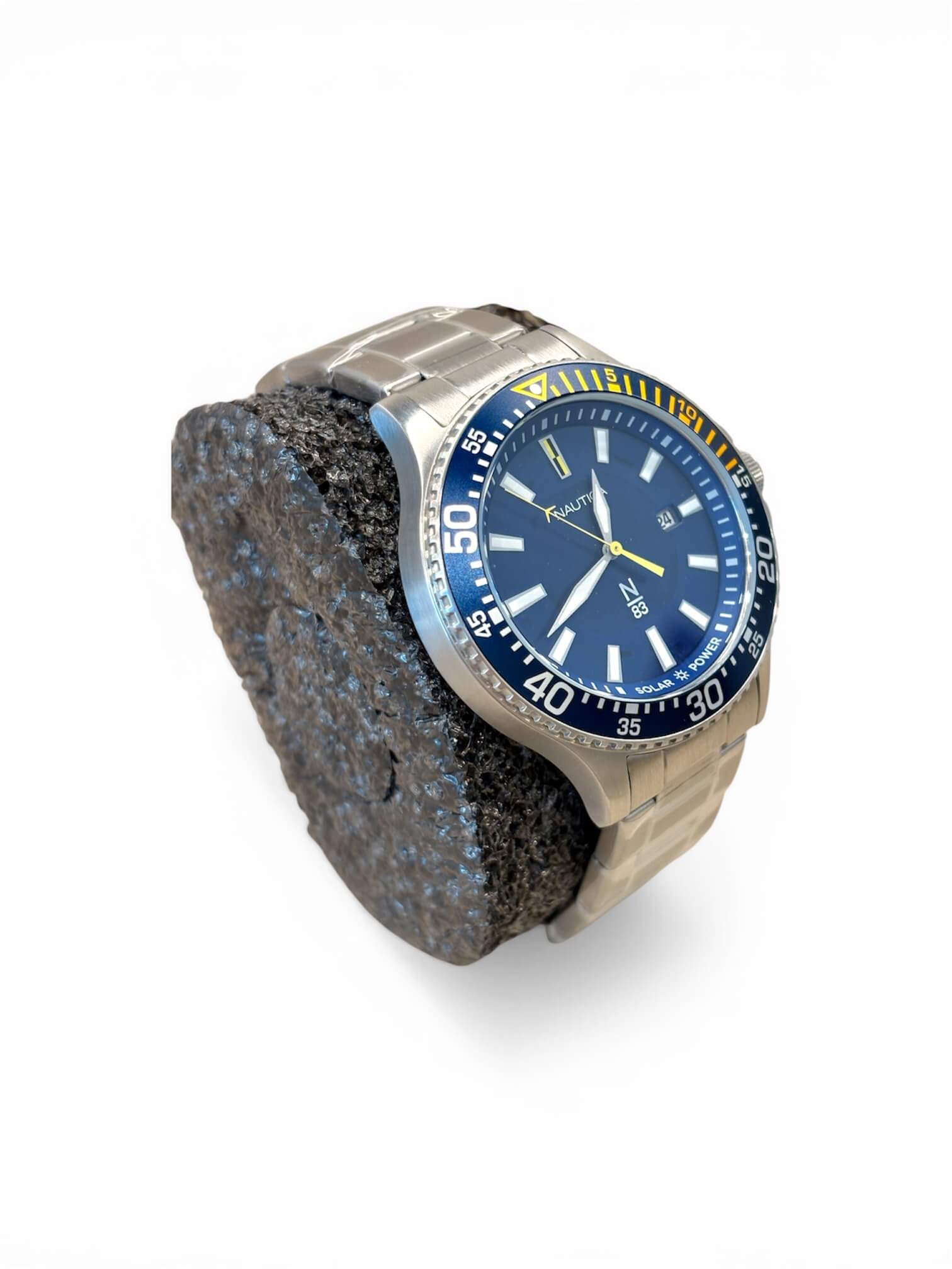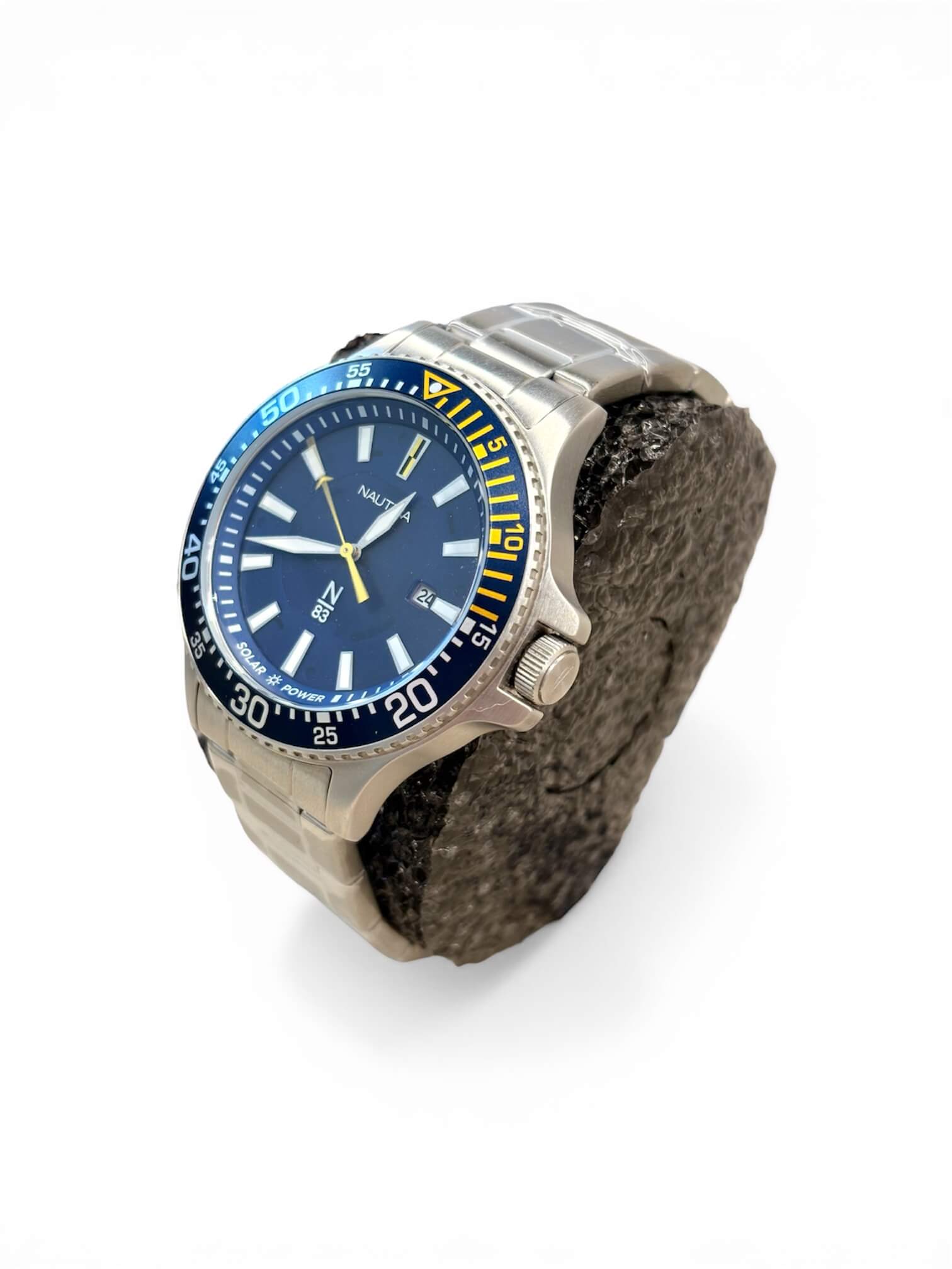 Ανδρικό ρολόι Nautica Solar με ασημί ατσάλινο μπρασελέ και μπλε καντράν