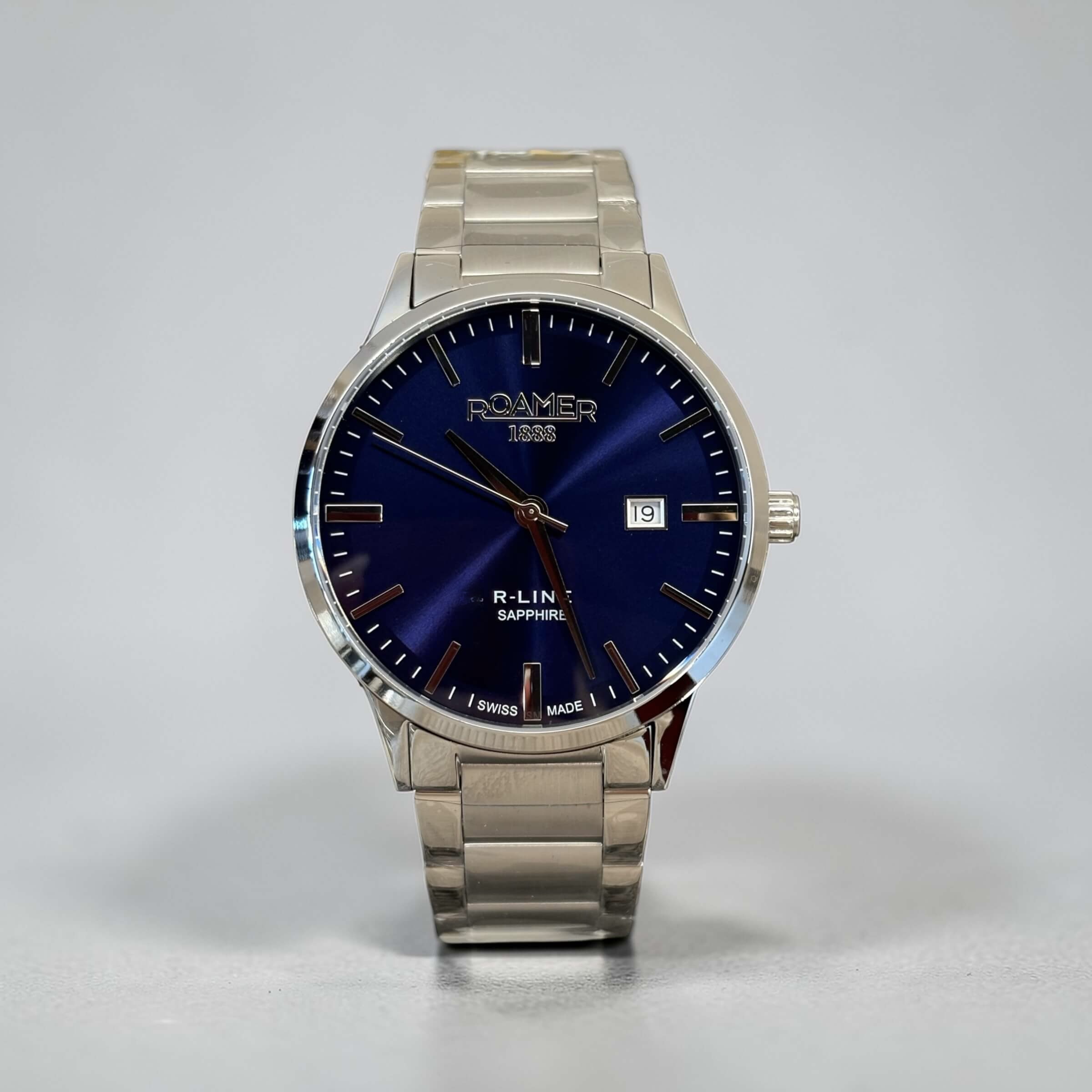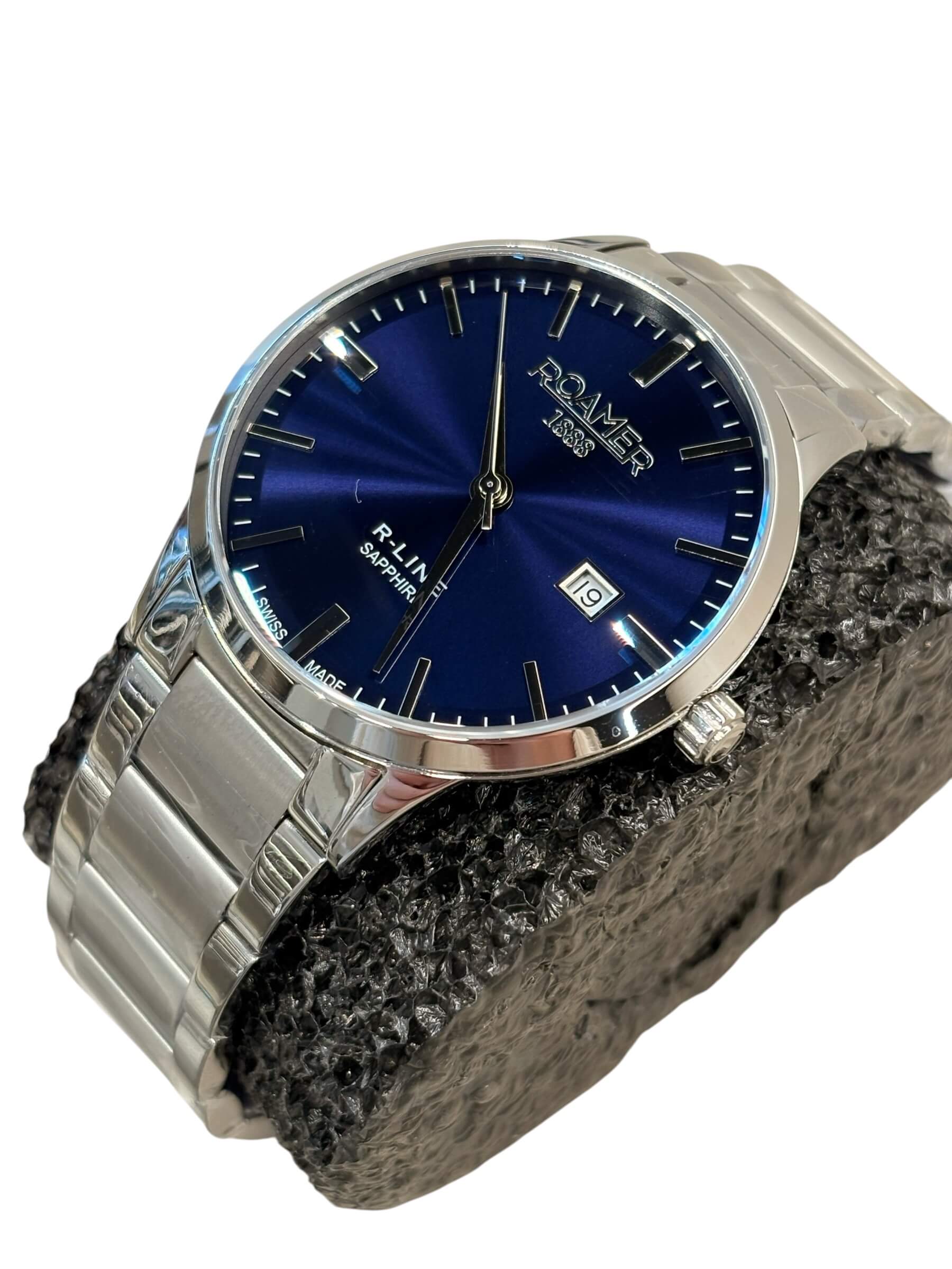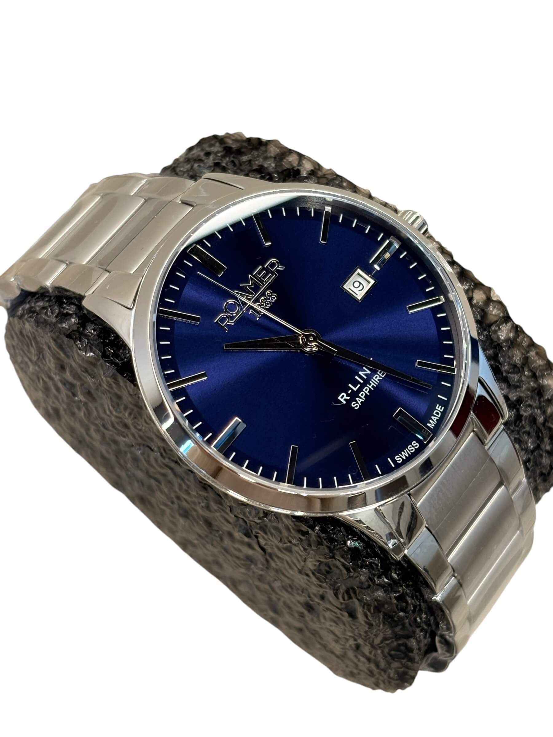 Ανδρικό ρολόι Roamer με ασημί ατσάλινο μπρασελέ και μπλε καντράν