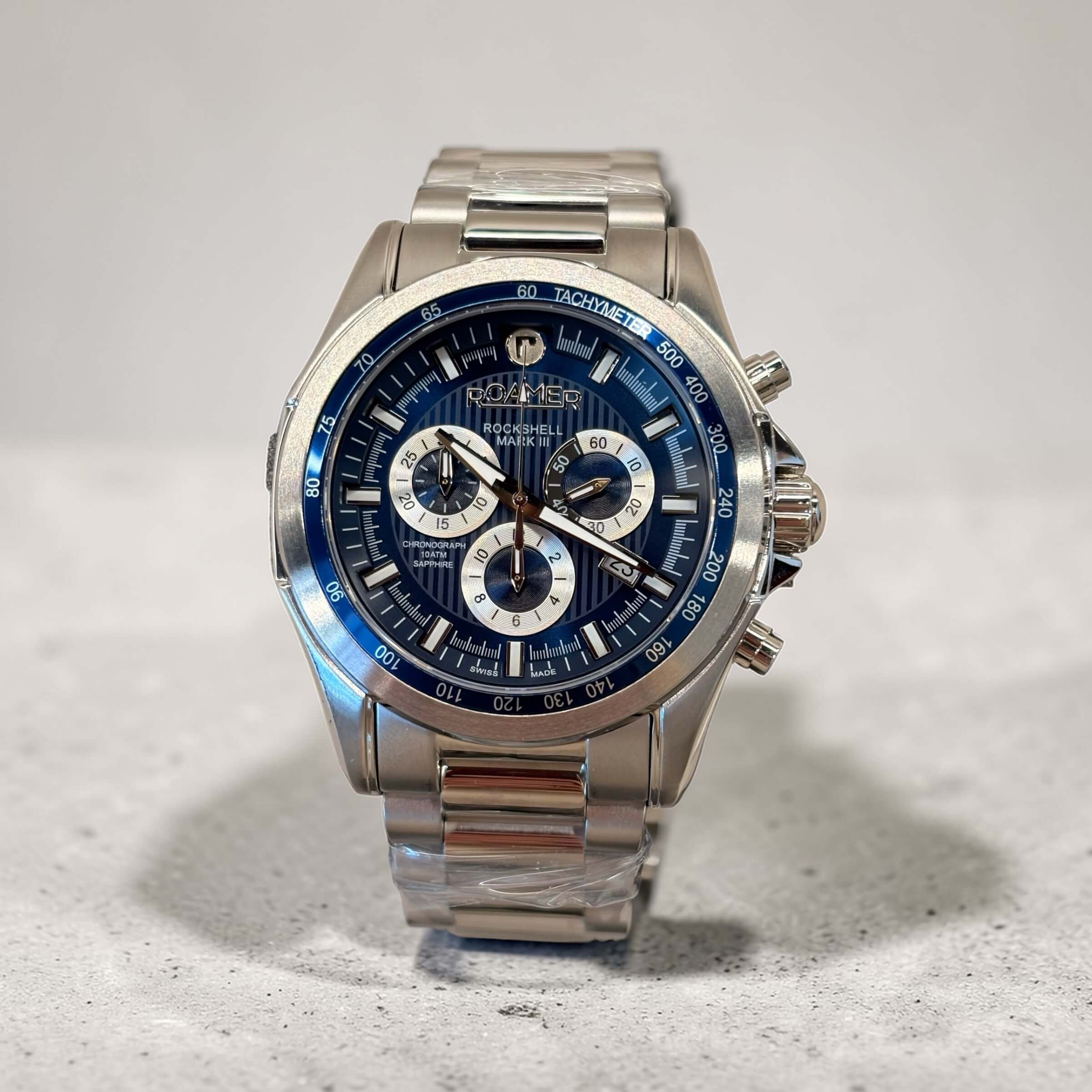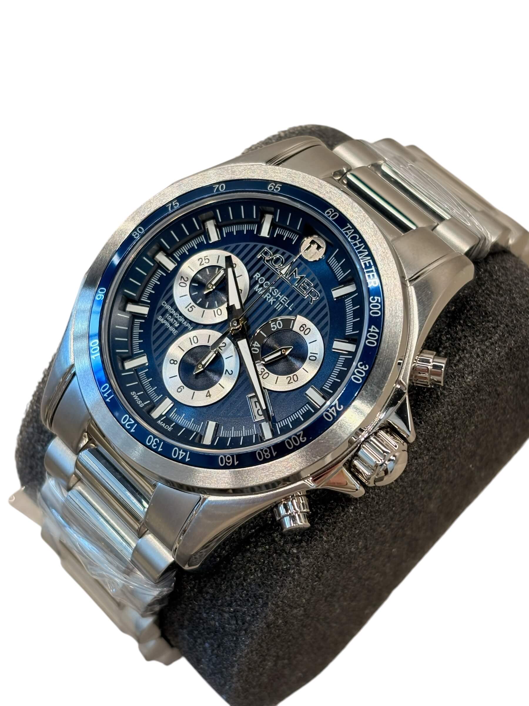 Ανδρικό ρολόι Roamer με ασημί ατσάλινο μπρασελέ και μπλε καντράν