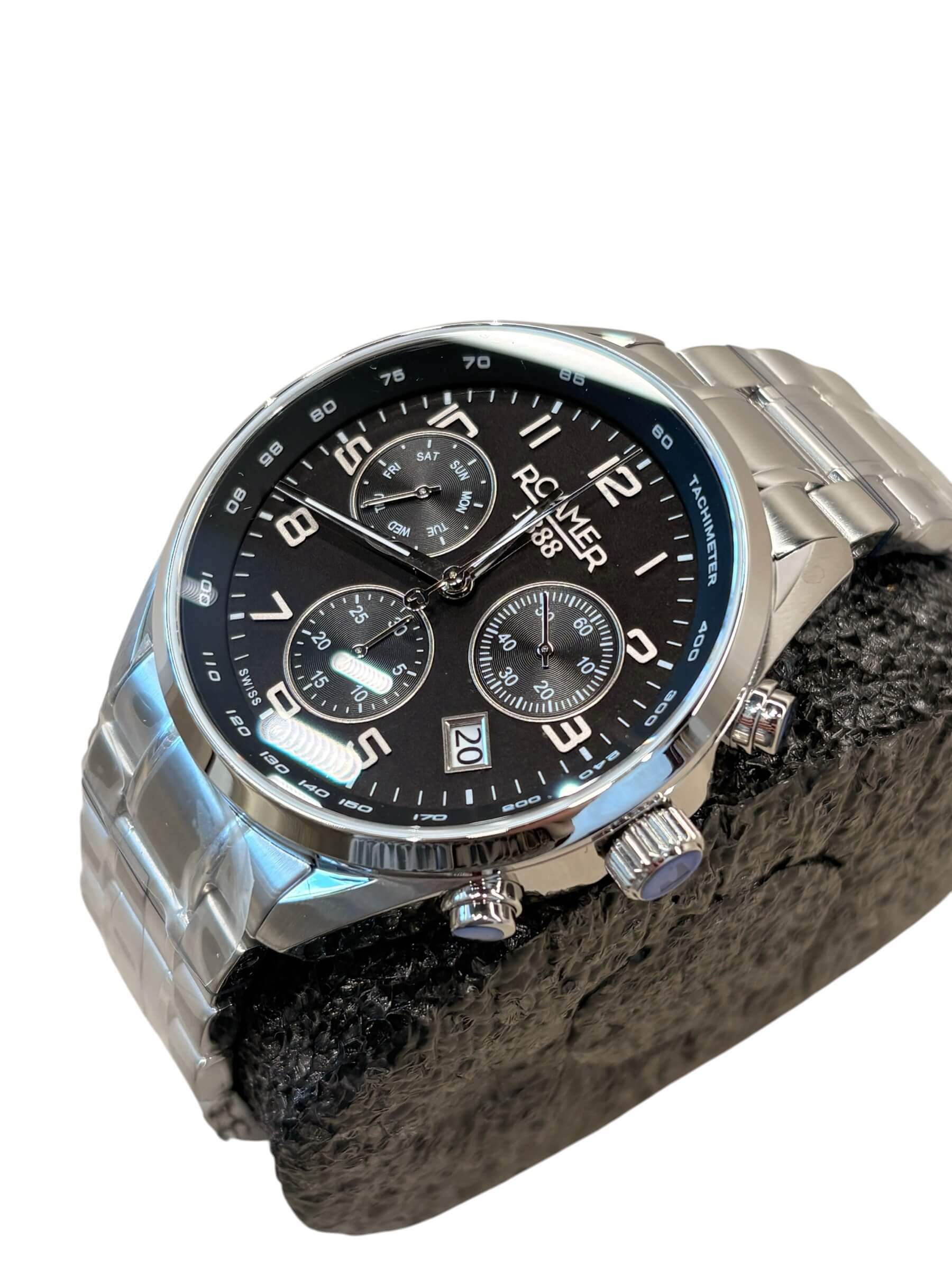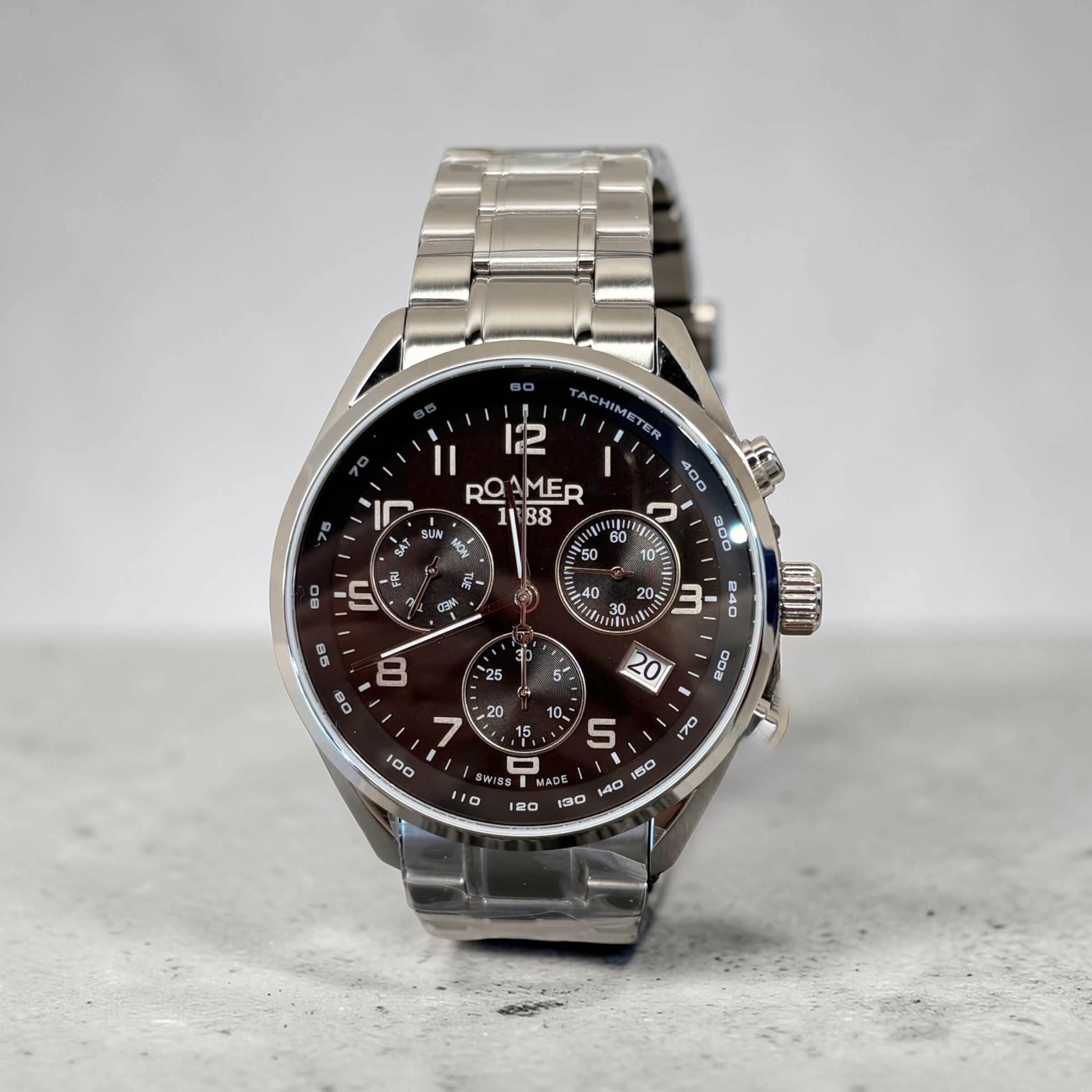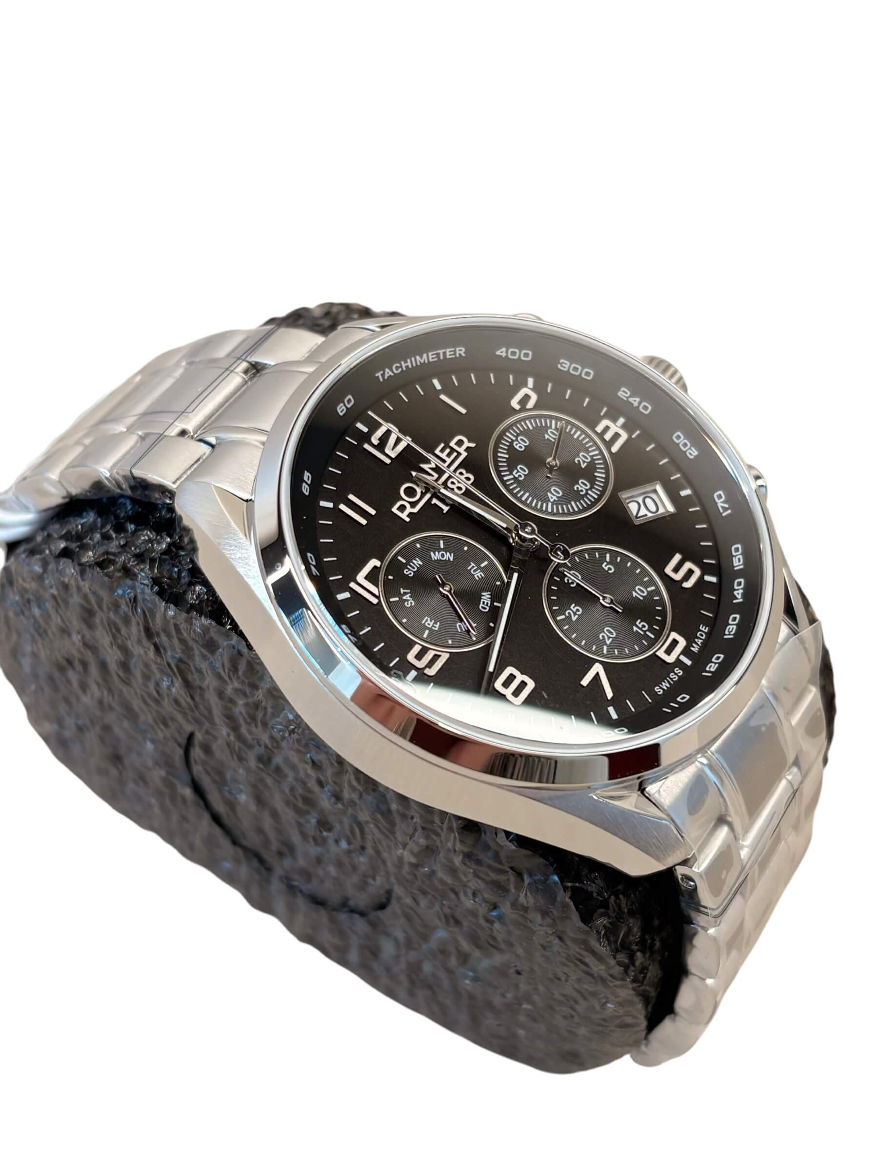 Ανδρικό ρολόι Roamer με ασημί ατσάλινο μπρασελέ και μαύρο καντράν