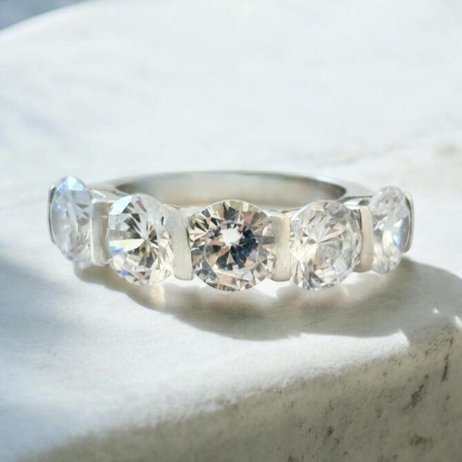 Ασημένιο δαχτυλίδι μισόβερο με πέτρες ζιργκόν , ασήμι 925
