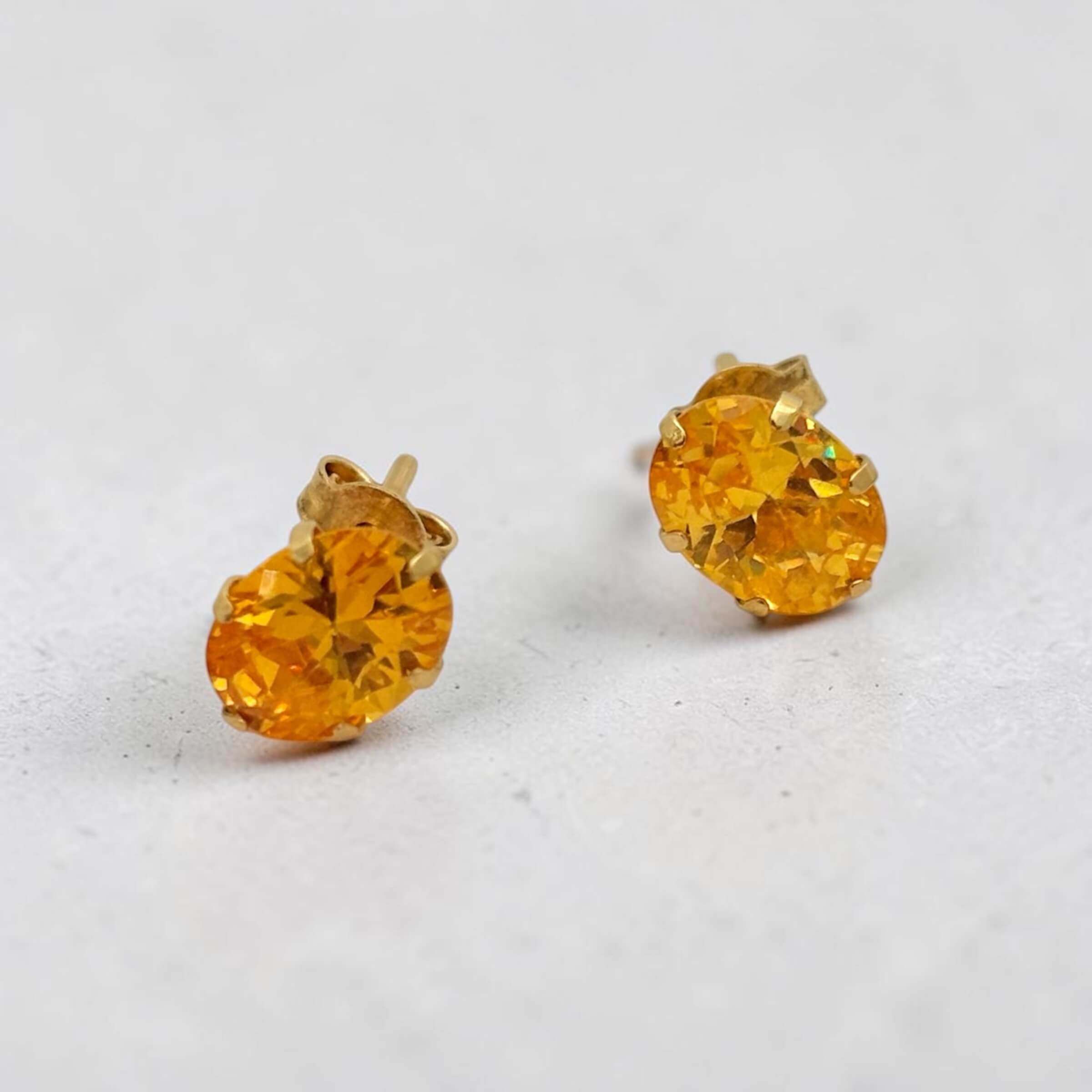 Χρυσά σκουλαρίκια γυναικεία καρφωτά στο αυτί με πορτοκαλί πέτρα ζιργκόν , κ14