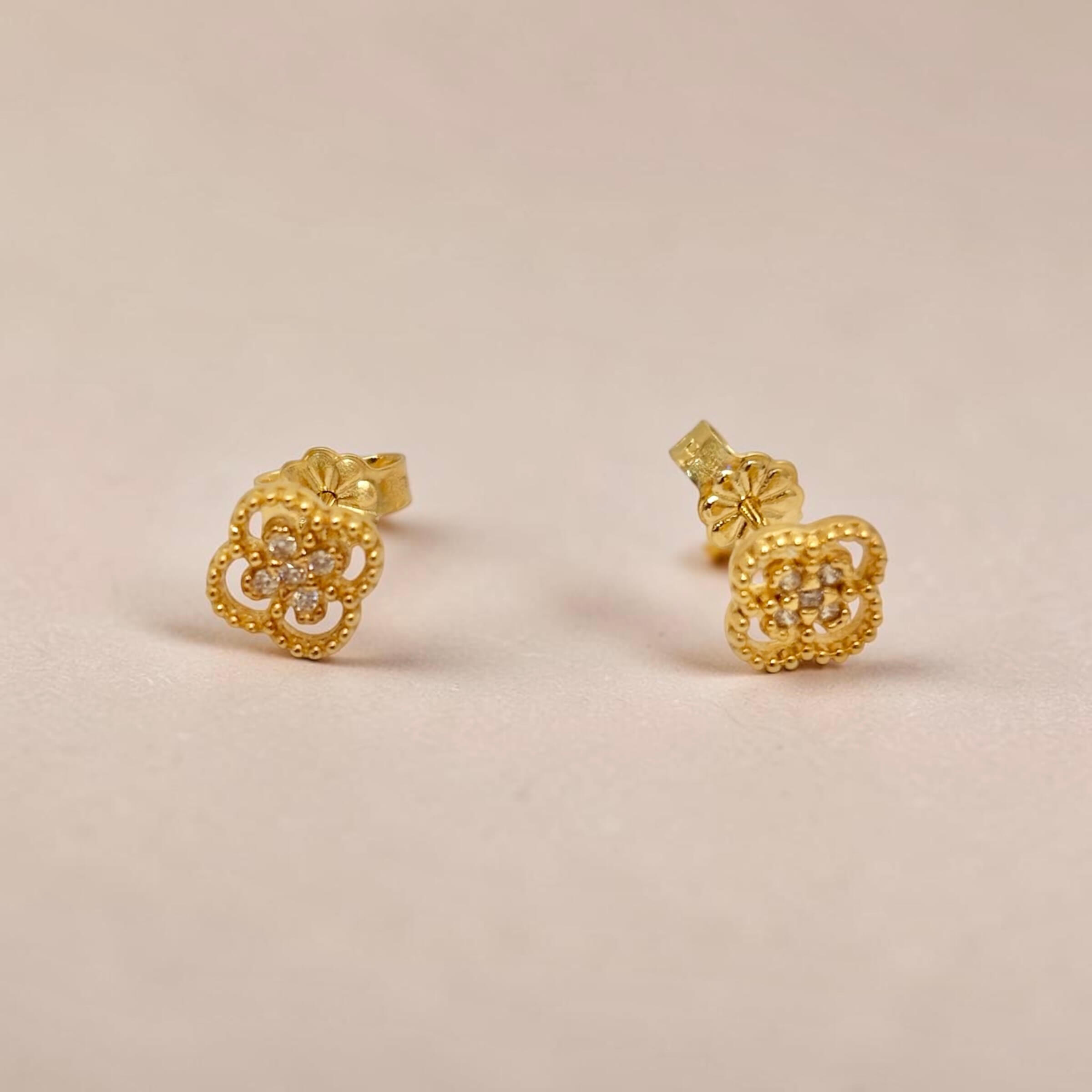 Χρυσά σκουλαρίκια γυναικεία καρφωτά στο αυτί τύπου Van cleef με πέτρες ζιργκόν , κ14