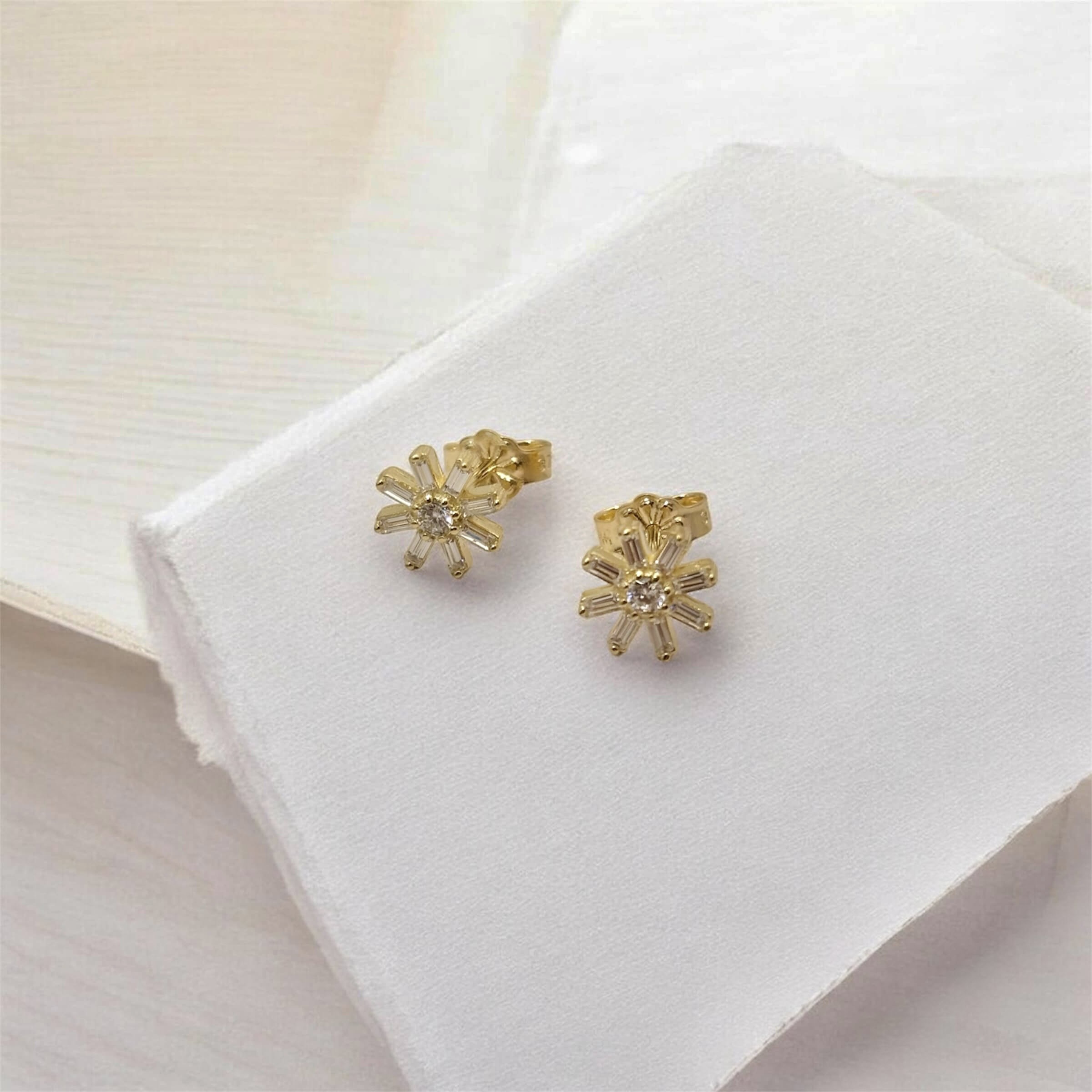 Χρυσά σκουλαρίκια πάνω στο αυτί σε σχήμα λουλουδιού με πέτρες ζιργκόν , κ9