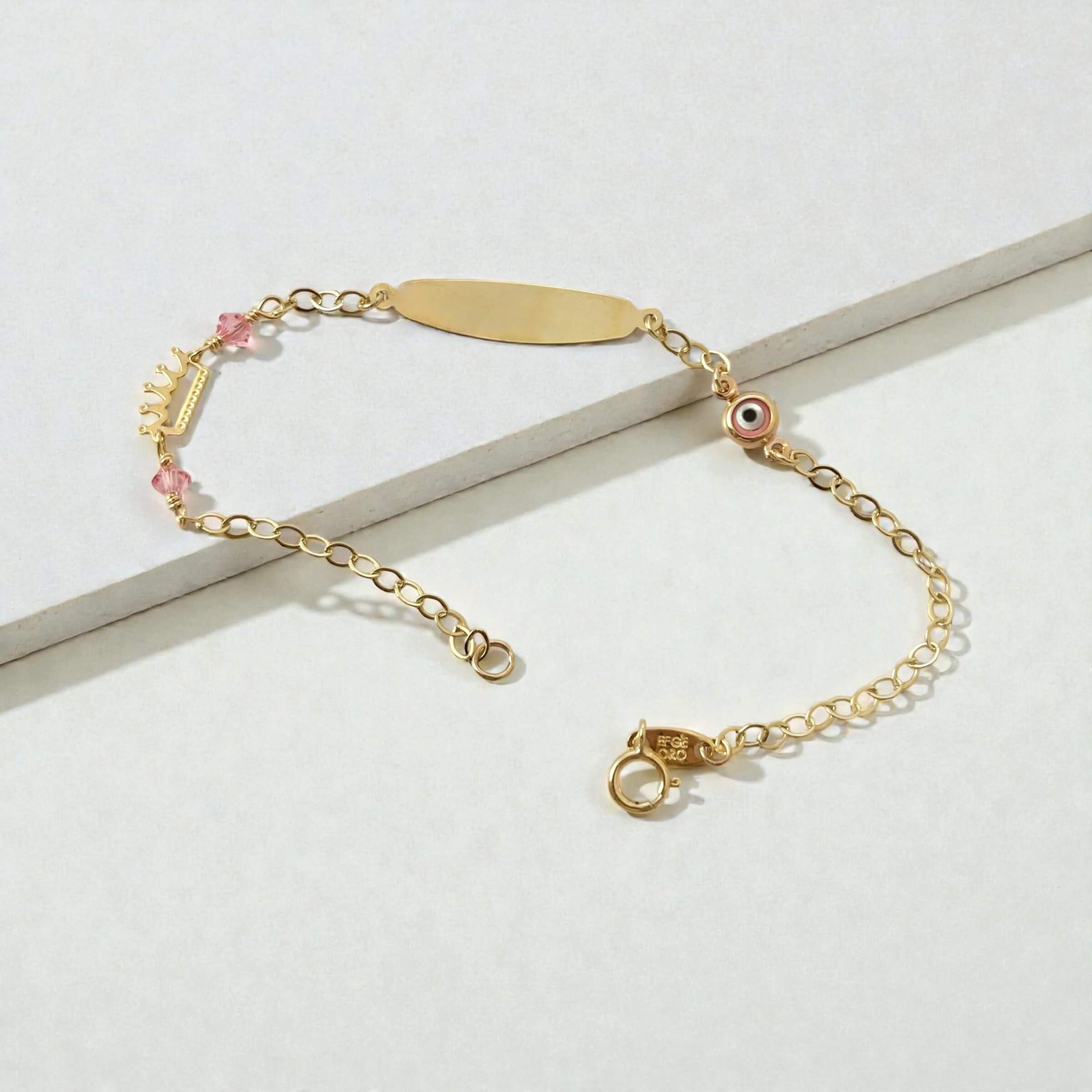 Χρυσή ταυτότητα για νεογέννητο κοριτσάκι με ματάκι-κορωνίτσα , κ9
