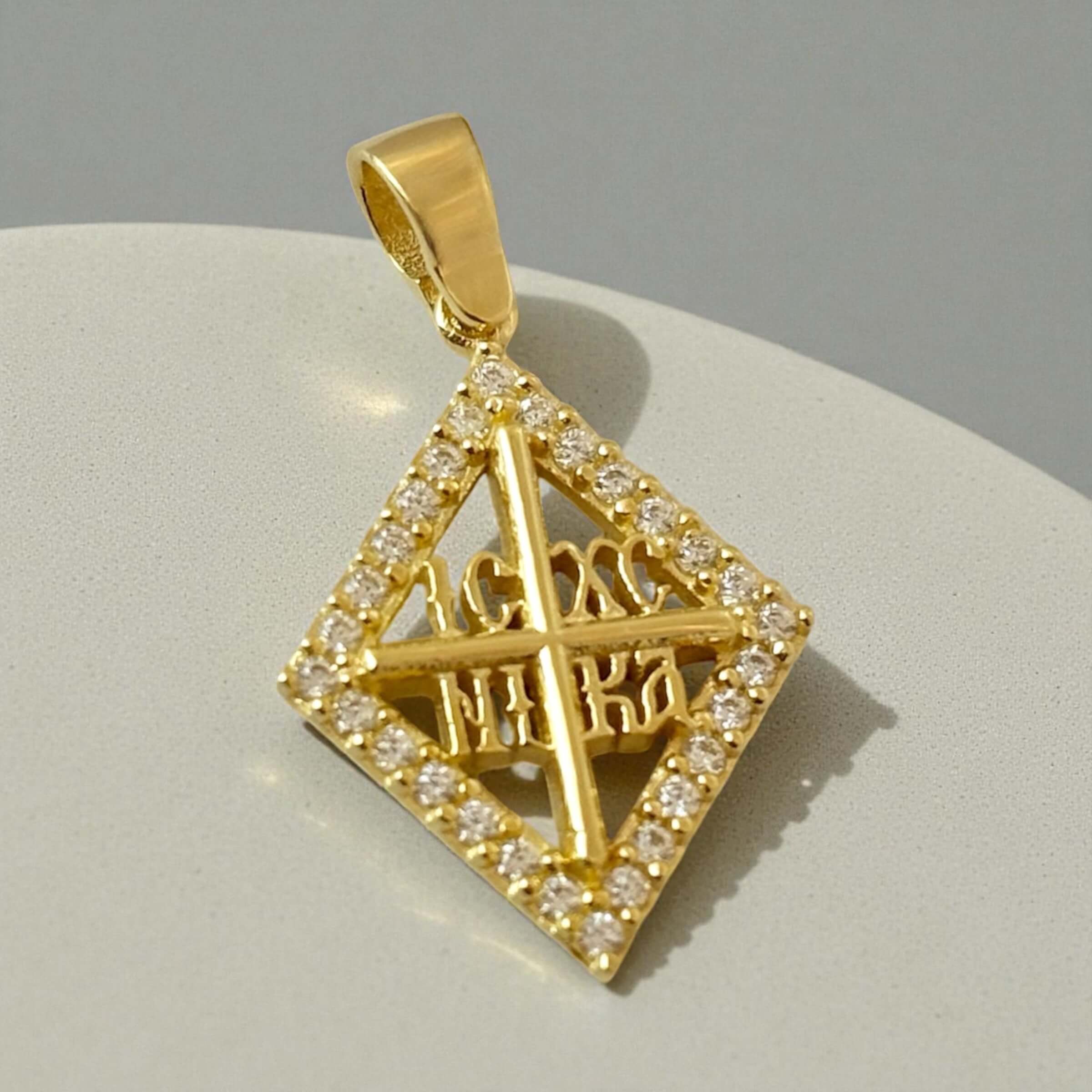 Χρυσό κωσταντινάτο για νεογέννητο κοριτσάκι με πέτρες ζιργκόν σε σχήμα ρόμβου , κ14