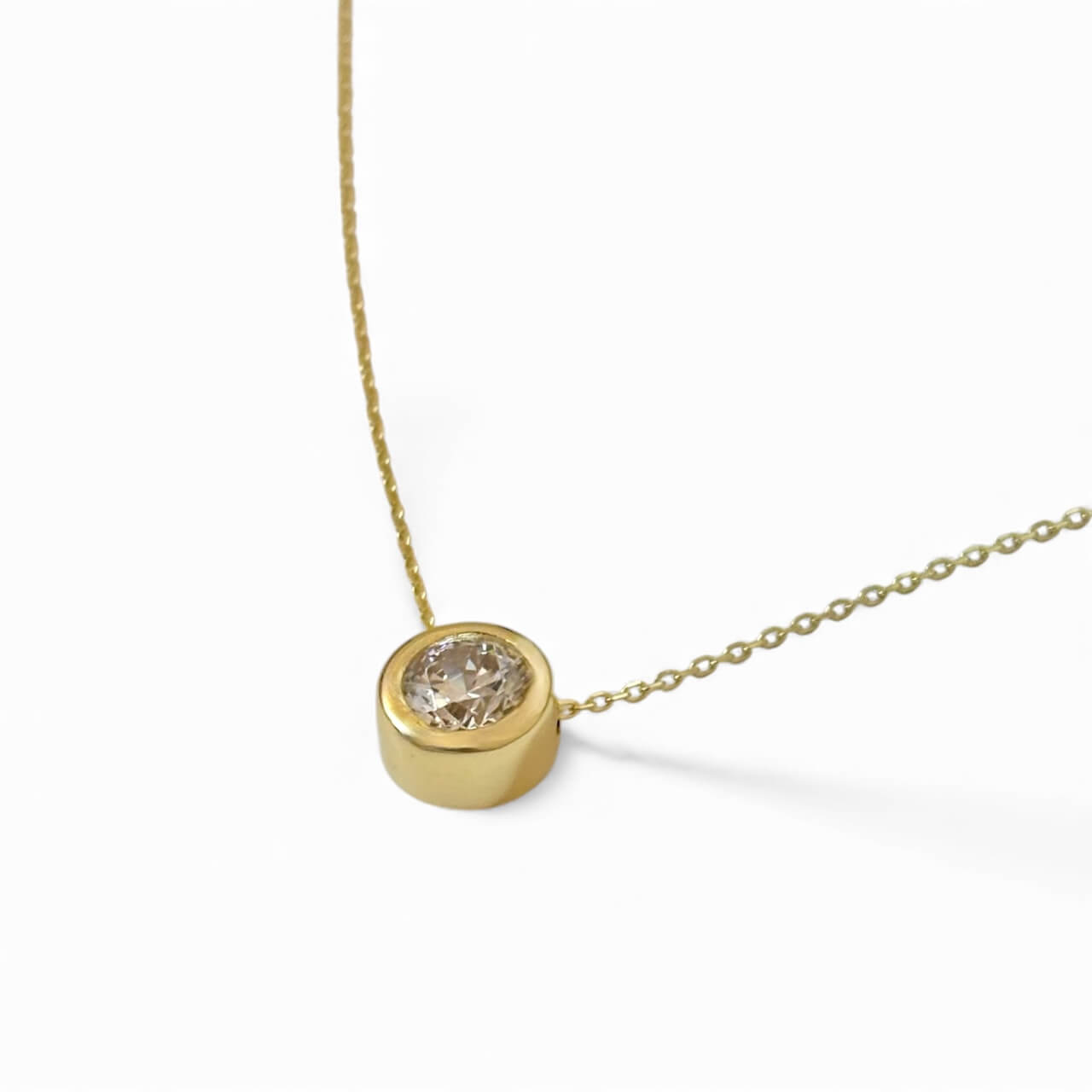 Χρυσό μενταγιόν μονοπετράκι σε στρογγυλό σχήμα με πέτρα ζιργκόν , κ14