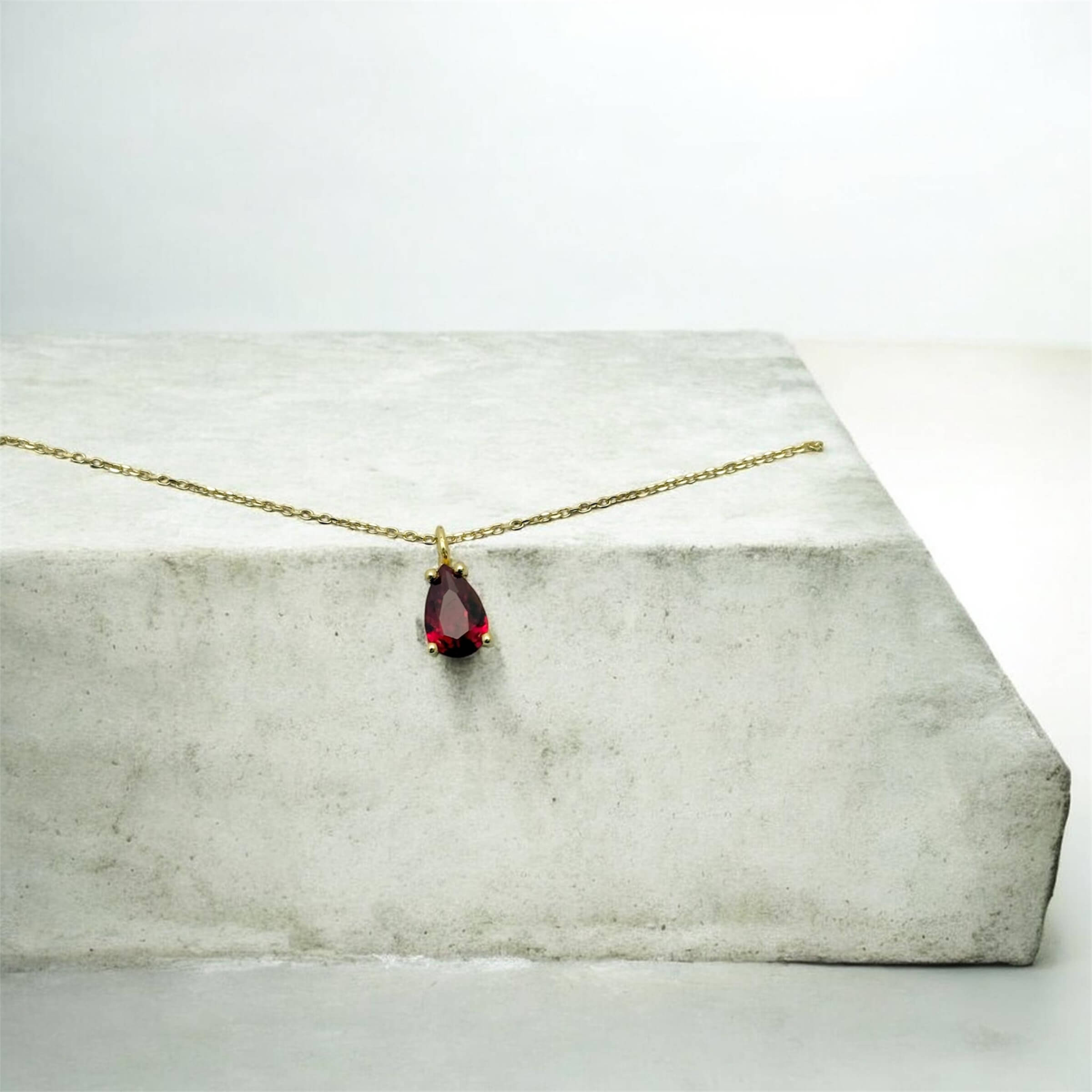 Χρυσό μενταγιόν σχήμα δάκρυ με κόκκινη πέτρα ζιργκόν , κ14