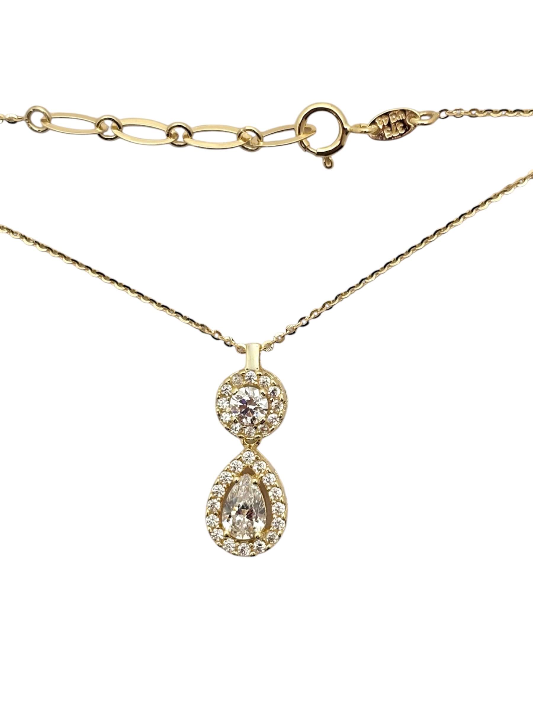 Χρυσό μενταγιόν σε σχήμα δάκρυ σε συνδυασμό με στρογγυλή λεπτομέρεια και πέτρες ζιργκόν ,κ9