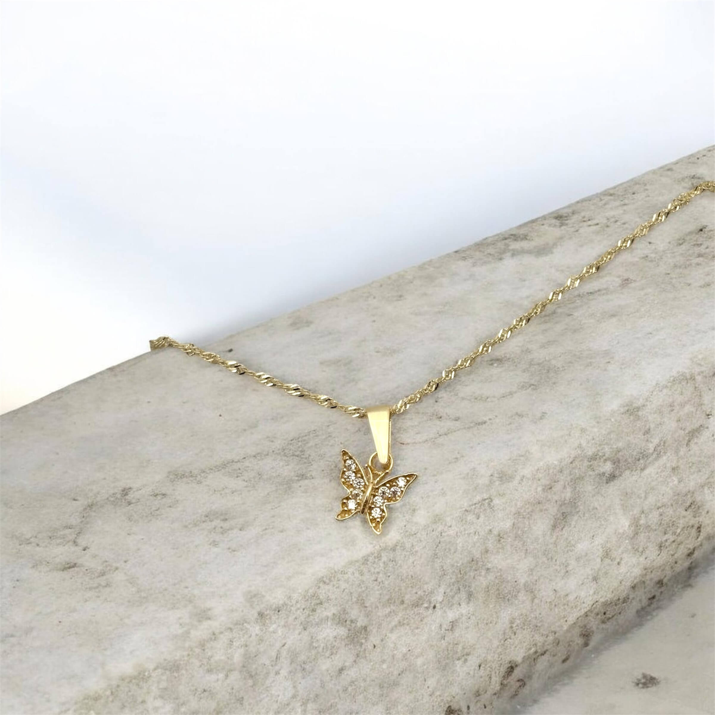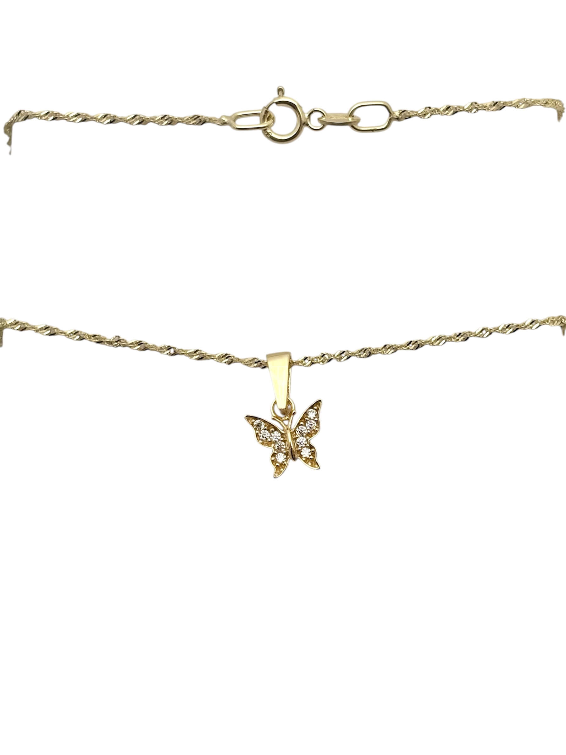 Χρυσό μενταγιόν σε σχήμα πεταλούδας με πέτρες ζιργκόν ,κ9