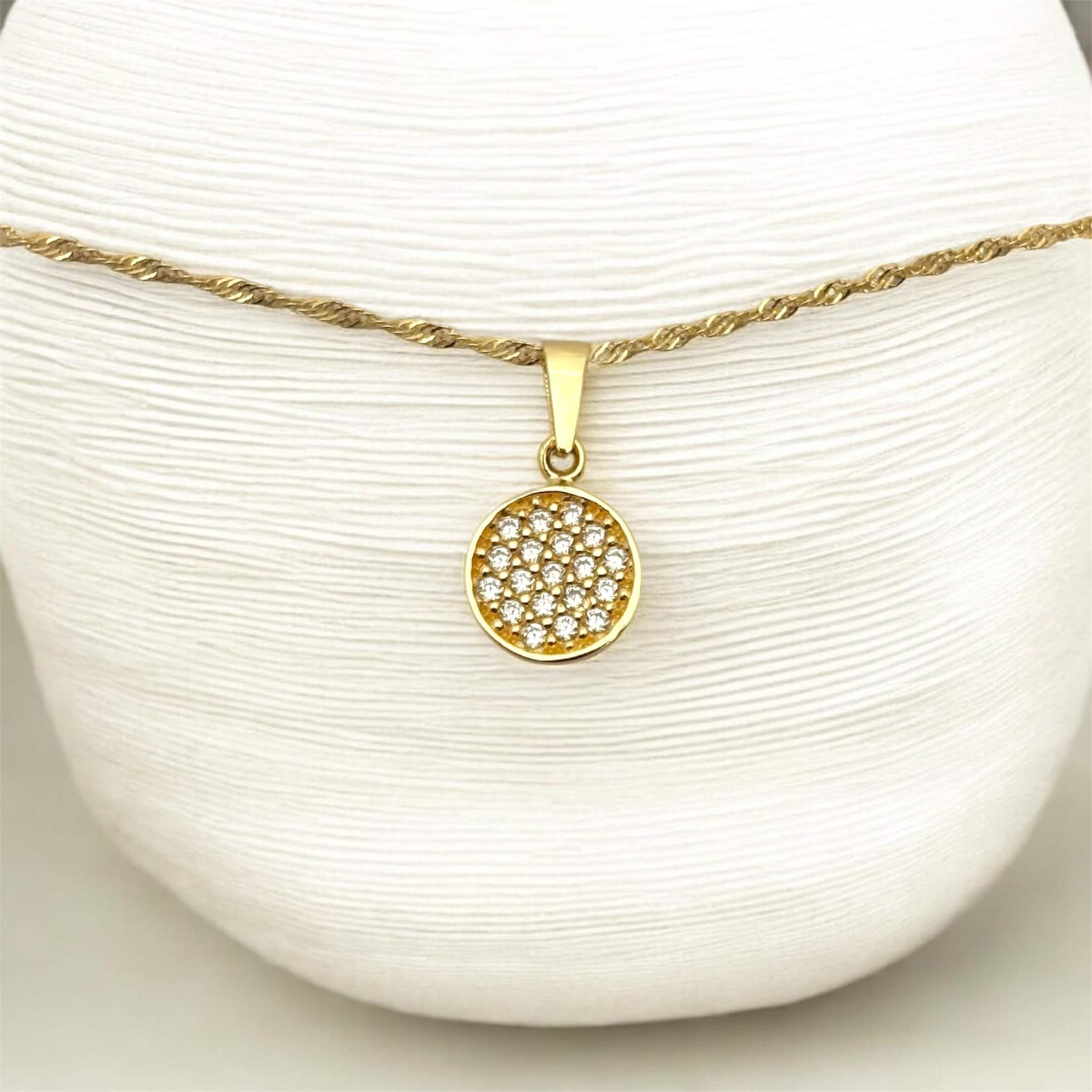 Χρυσό μενταγιόν σε στρογγυλό σχέδιο με πέτρα ζιργκόν ,κ14