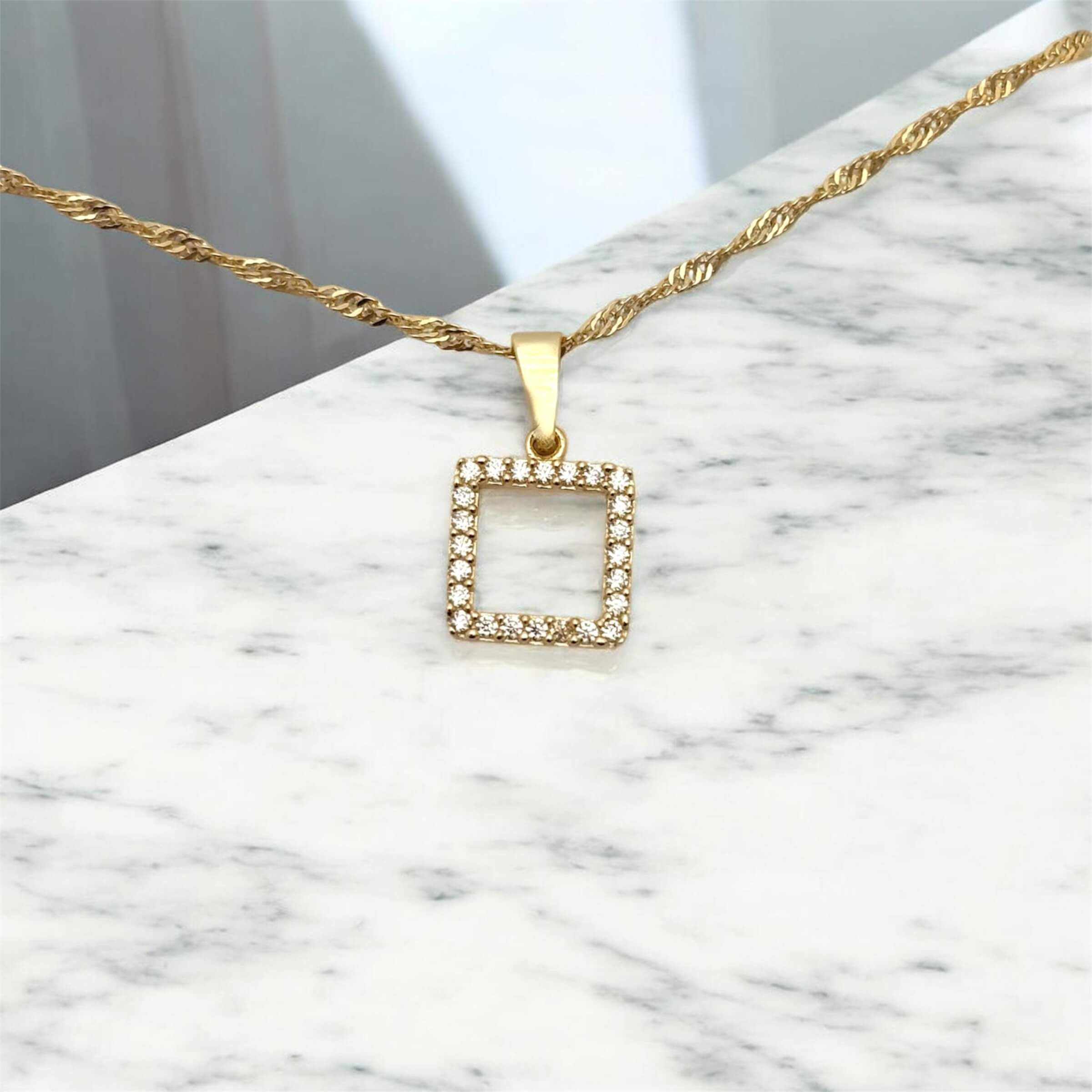 Χρυσό μενταγιόν σε τετράγωνο σχέδιο με πέτρες ζιργκόν ,κ14