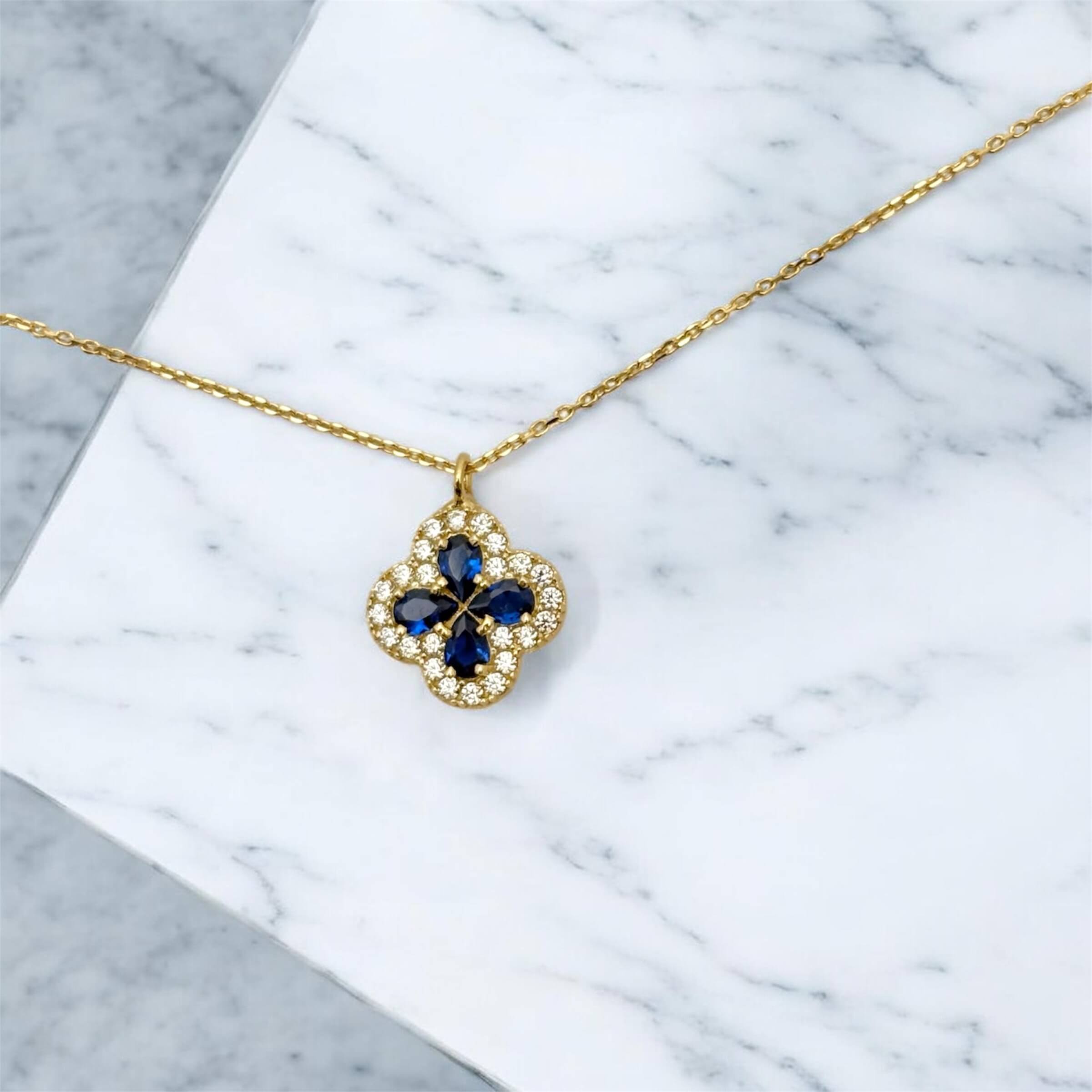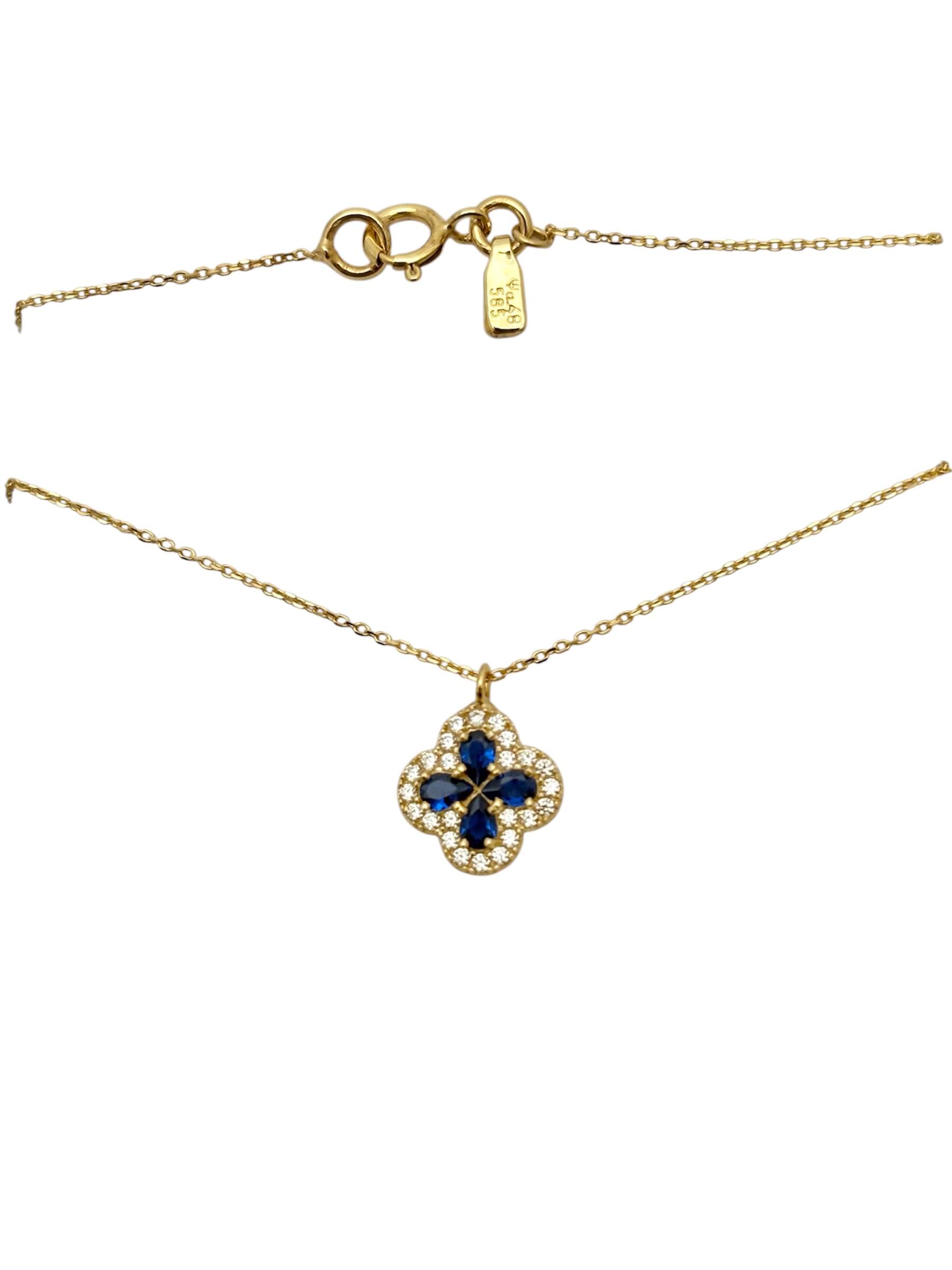 Χρυσό μενταγιόν στυλ Van cleef με μπλε και λευκές πέτρες ζιργκόν , κ14