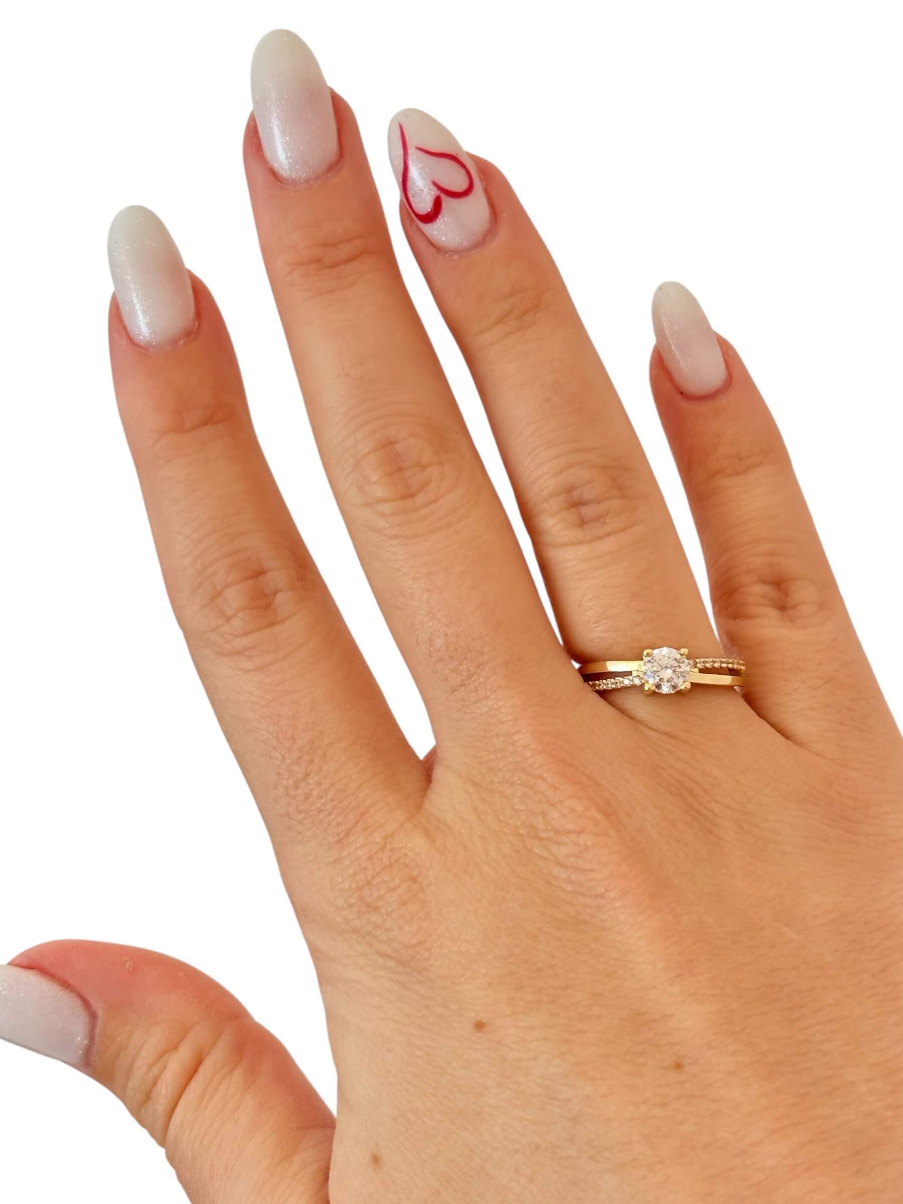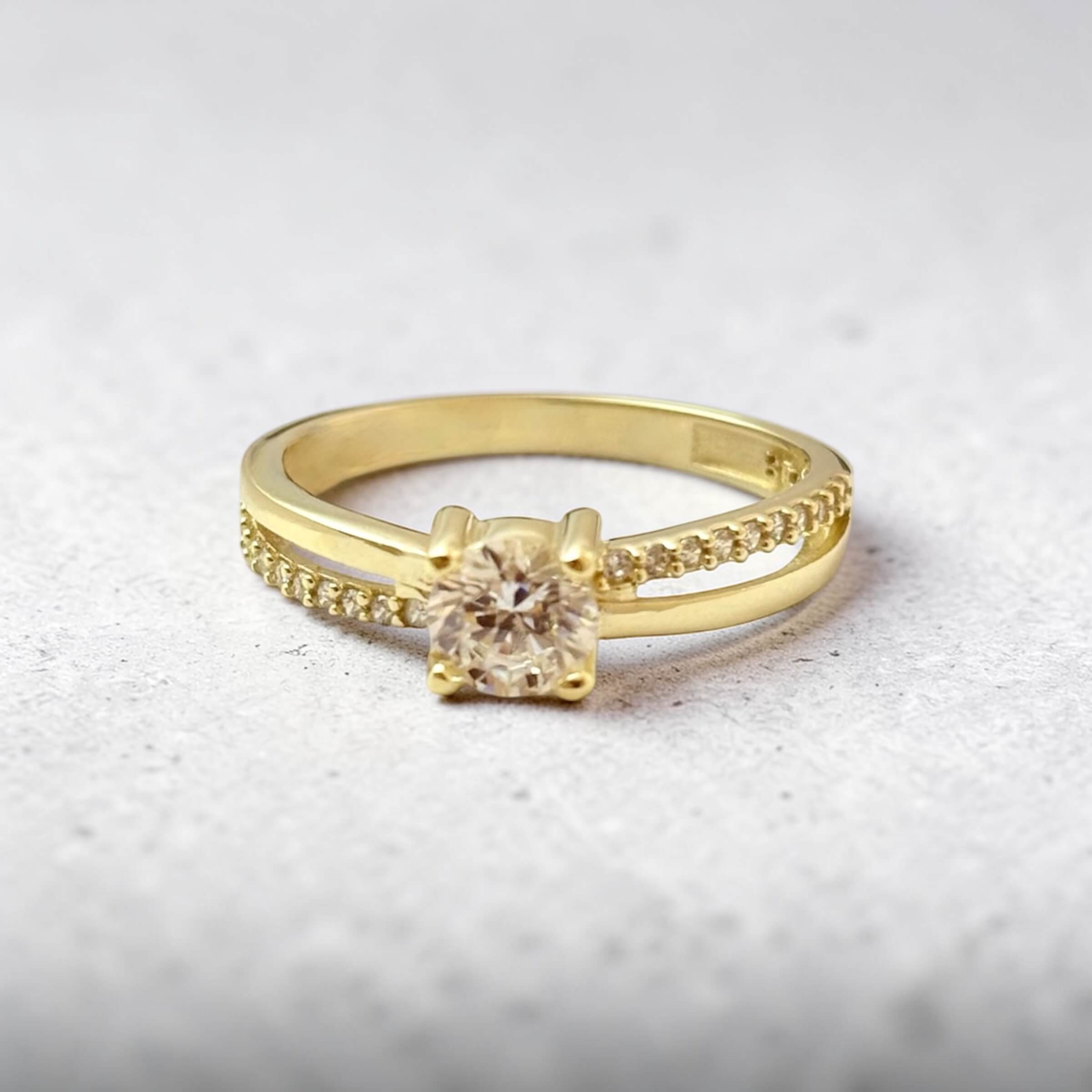 Χρυσό μονόπετρο δαχτυλίδι με κεντρική και πλαϊνές πέτρες ζιργκόν , κ9