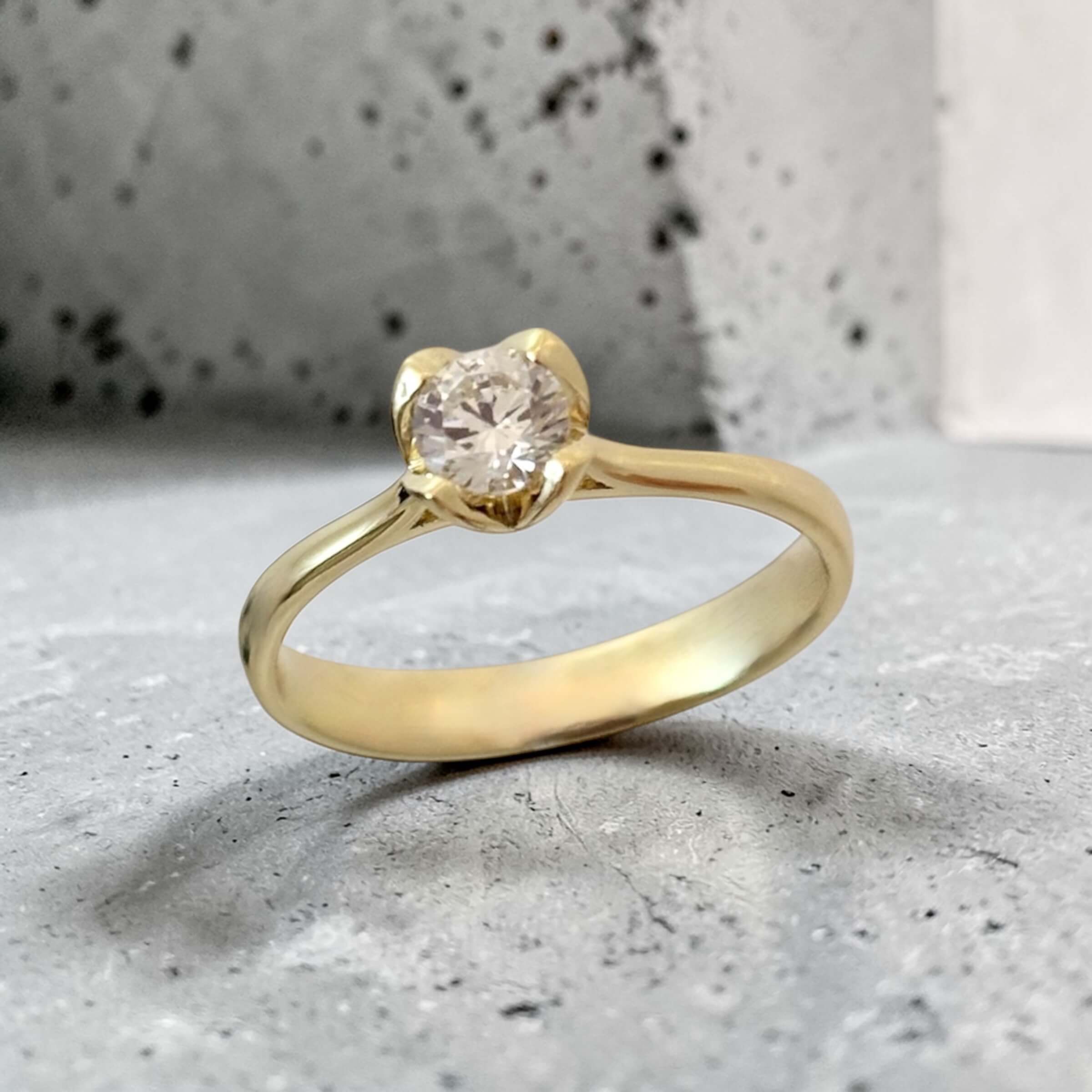 Χρυσό μονόπετρο δαχτυλίδι με πέτρα ζιργκόν σε σχήμα λουλουδιού , κ9