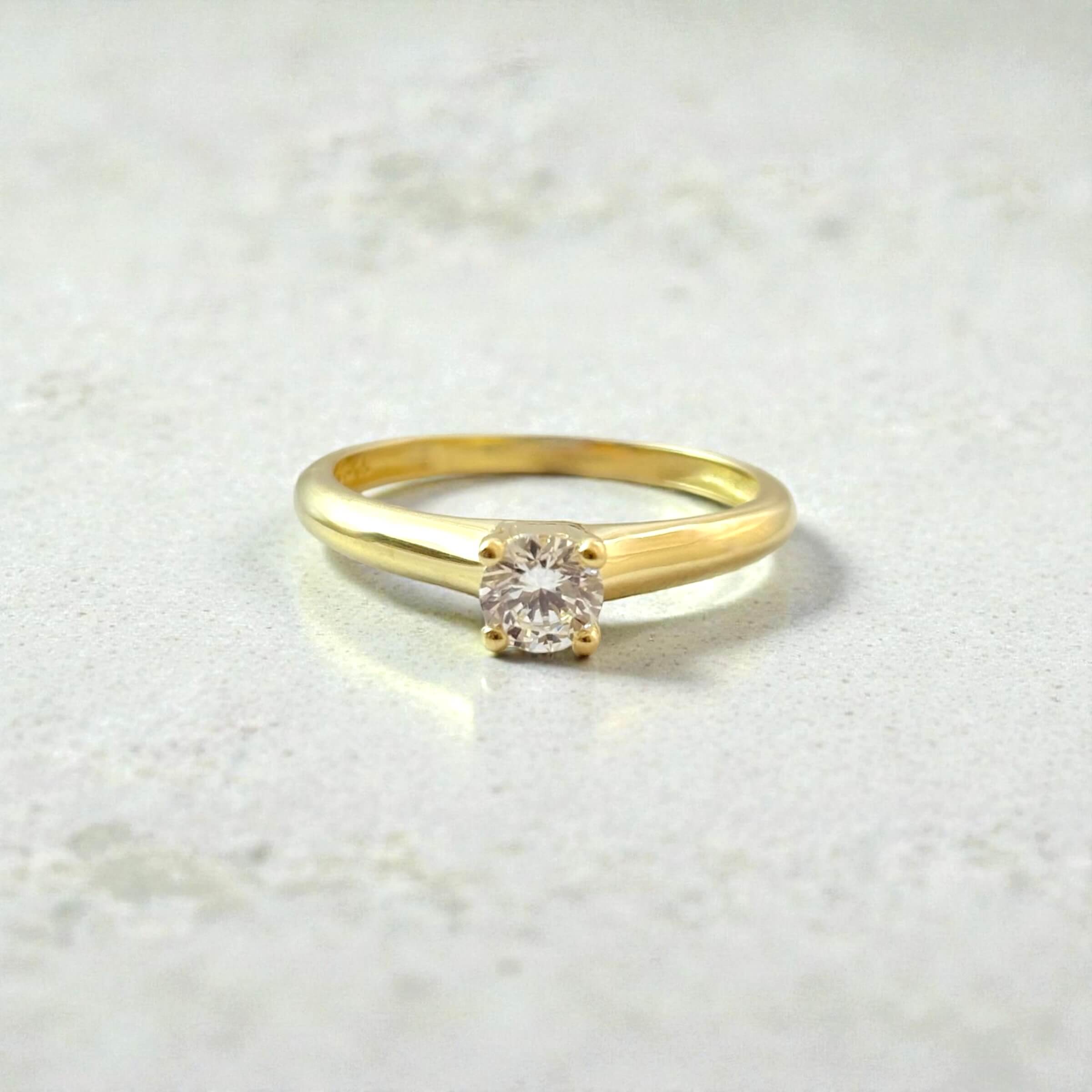 Χρυσό μονόπετρο δαχτυλίδι σε κλασική γραμμή με πέτρα ζιργκόν , κ14