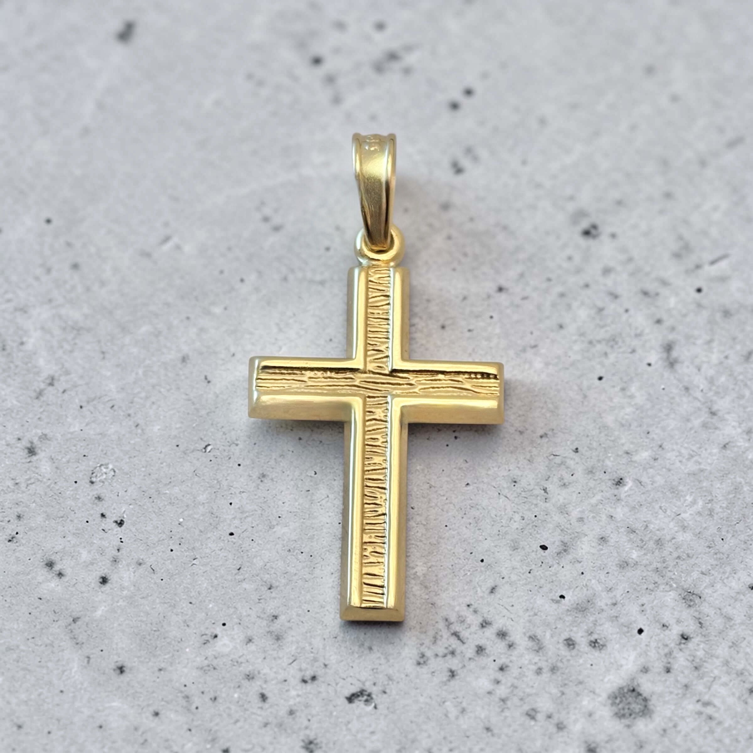 Χρυσός σταυρός βάπτισης για αγόρι με ματ εσωτερική σκαλιστή επιφάνεια ,κ9