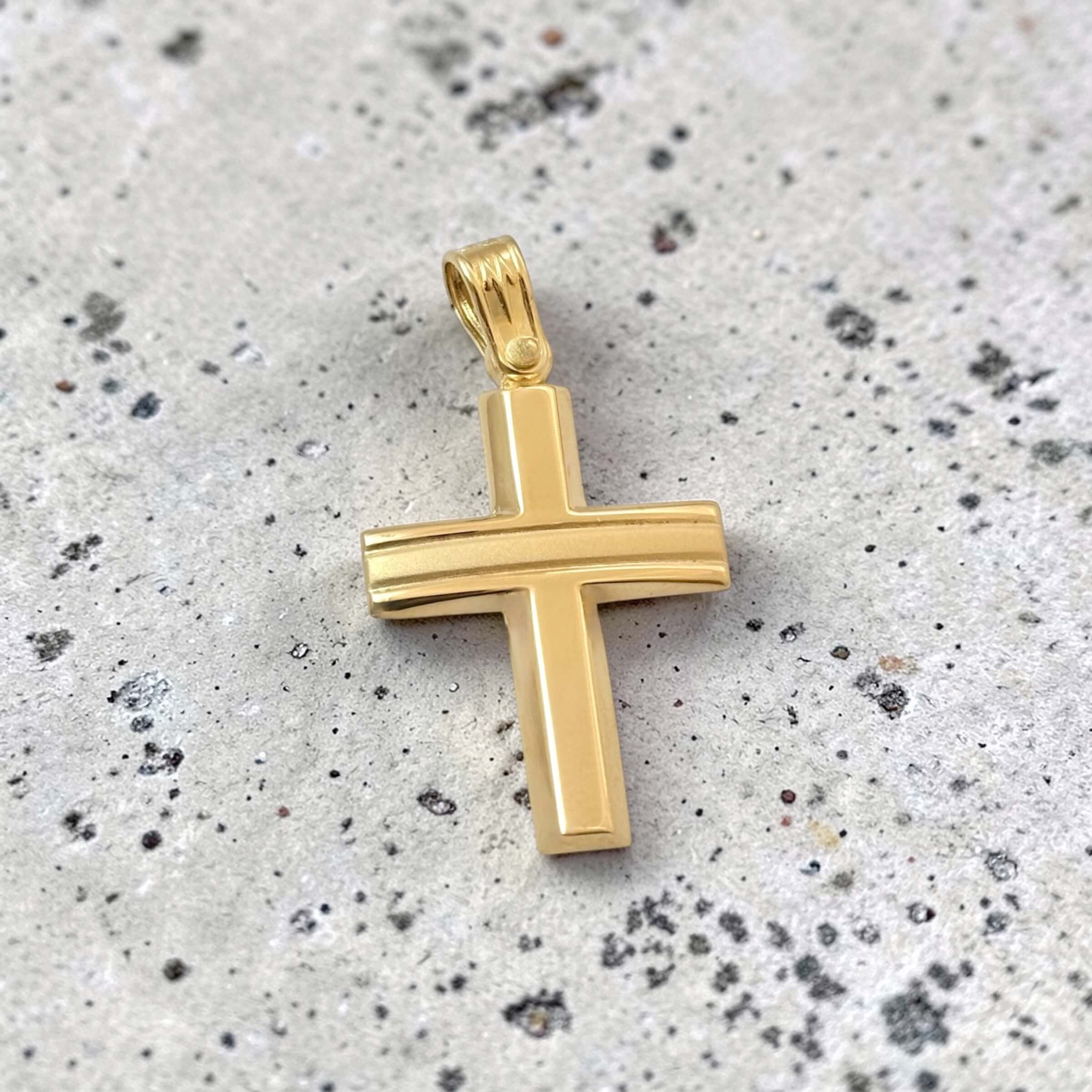 Χρυσός σταυρός βάπτισης για αγόρι με συνδυασμό ματ και λουστράτης επιφάνειας διπλής όψης , κ14