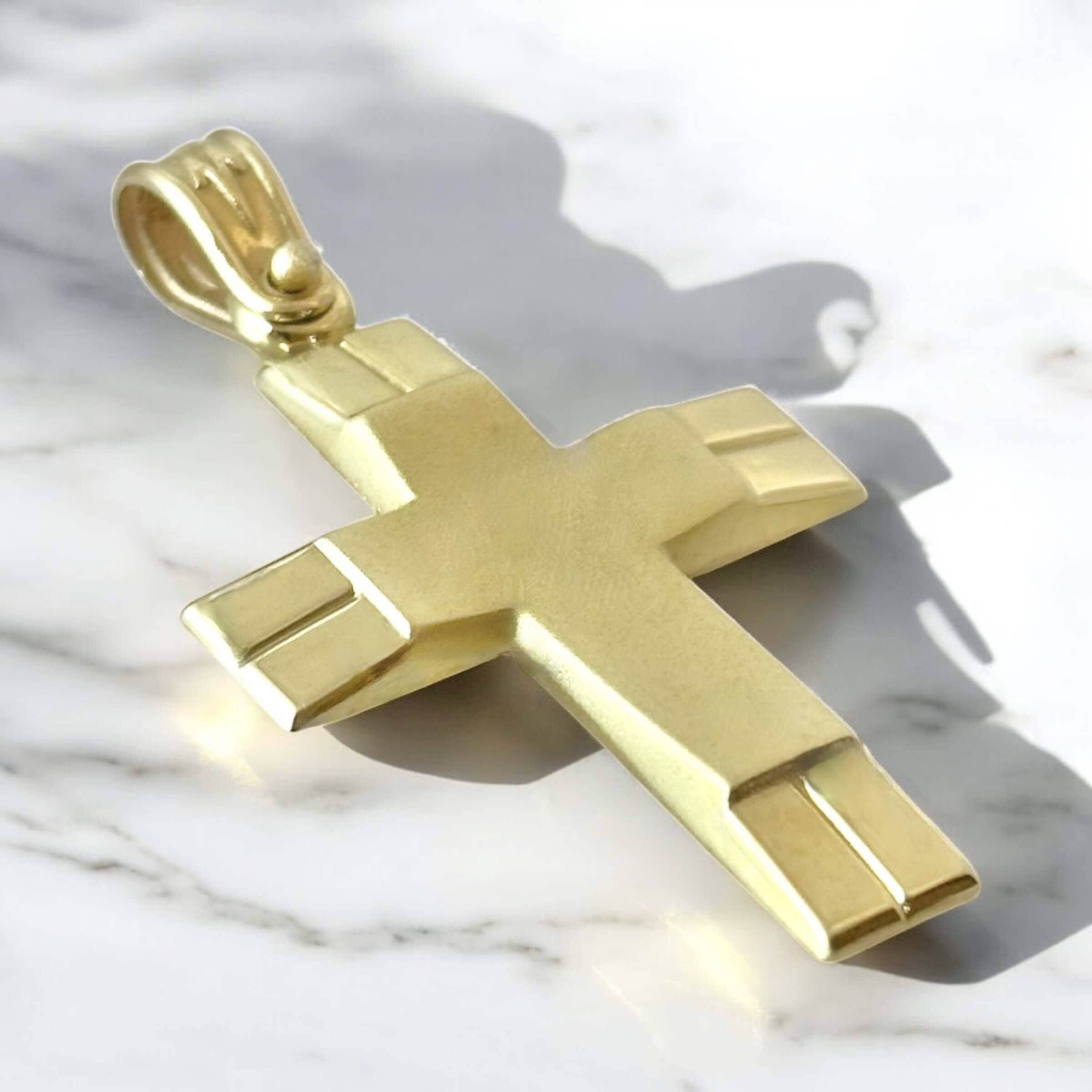 Χρυσός σταυρός βάπτισης για αγόρι με συνδυασμό ματ και λουστράτης επιφάνειας διπλής όψης ,κ14