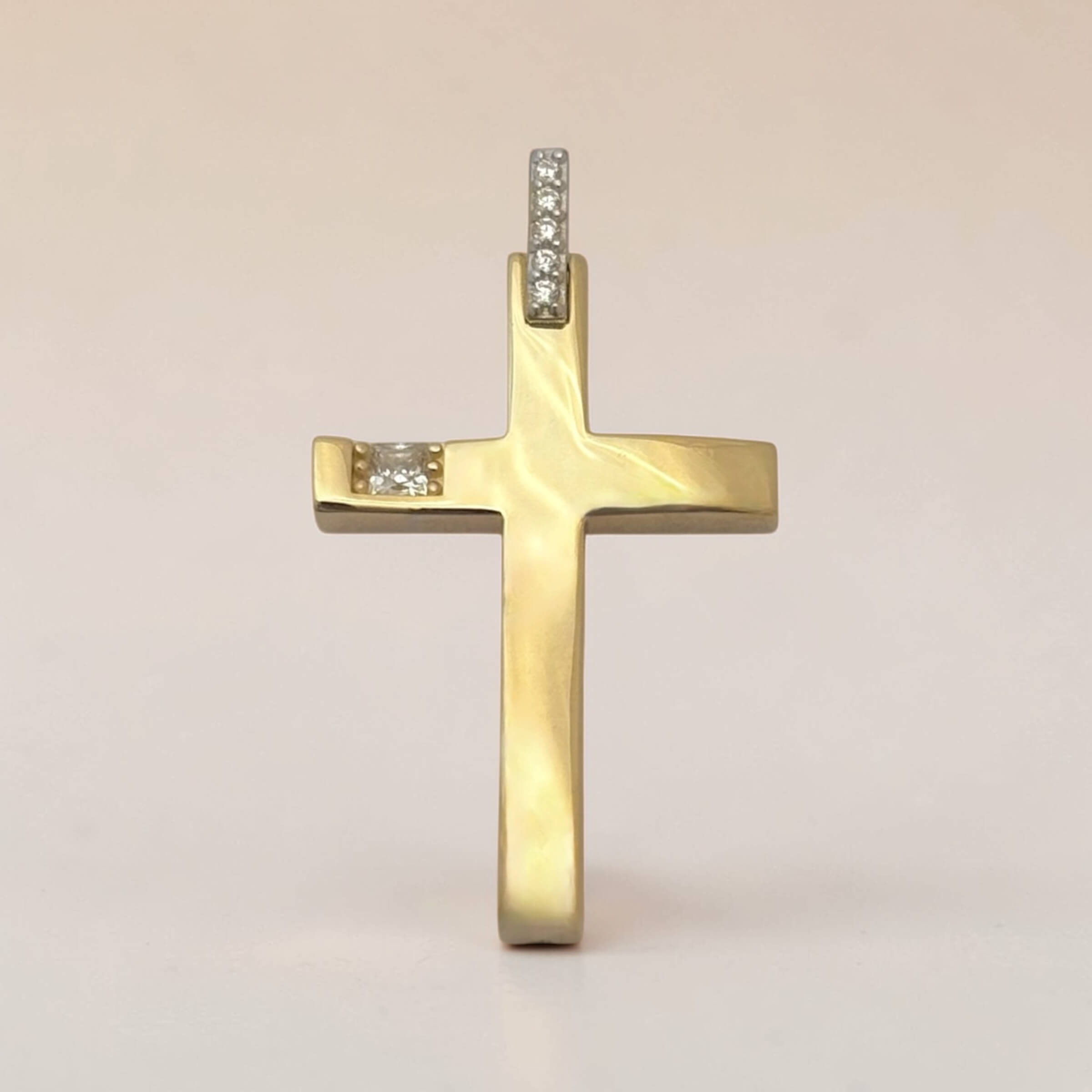 Χρυσός σταυρός βάπτισης για κορίτσι λουστράτος με πέτρες ζιργκόν διπλής όψης ,κ9