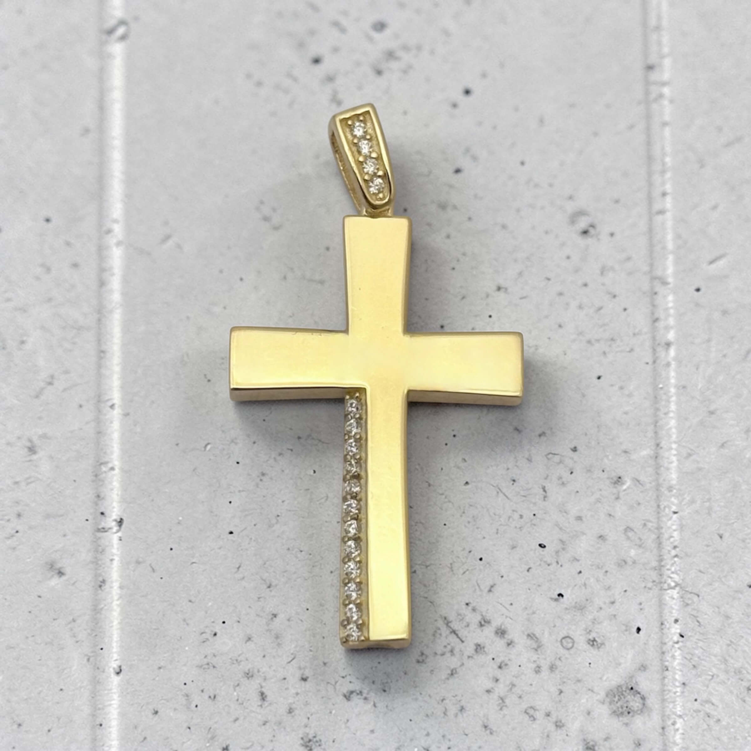 Χρυσός σταυρός βάπτισης για κορίτσι λουστράτος με πέτρες ζιργκόν διπλής όψης ,κ9