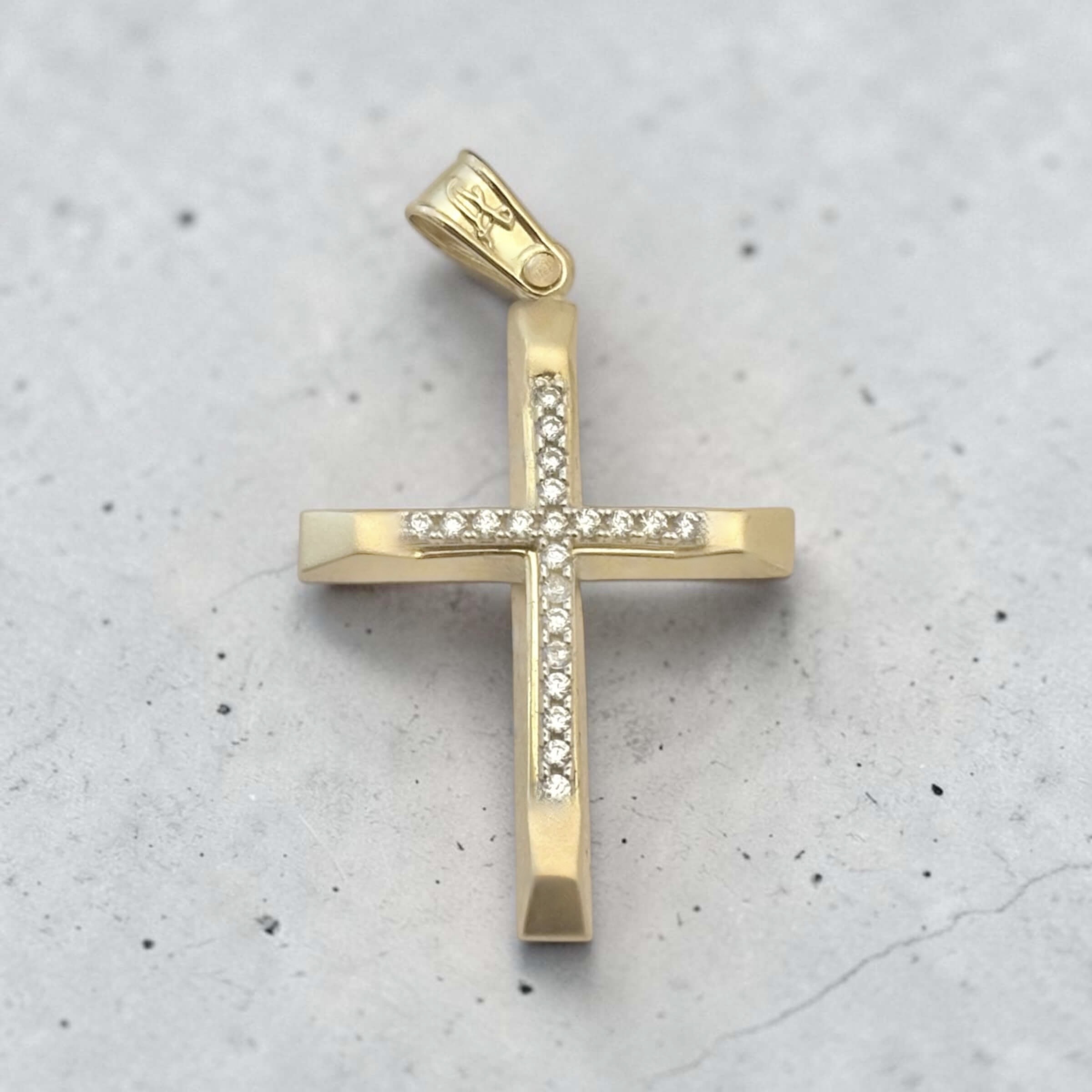 Χρυσός σταυρός βάπτισης για κορίτσι με ματ επιφάνεια και πέτρες ζιργκόν , κ14