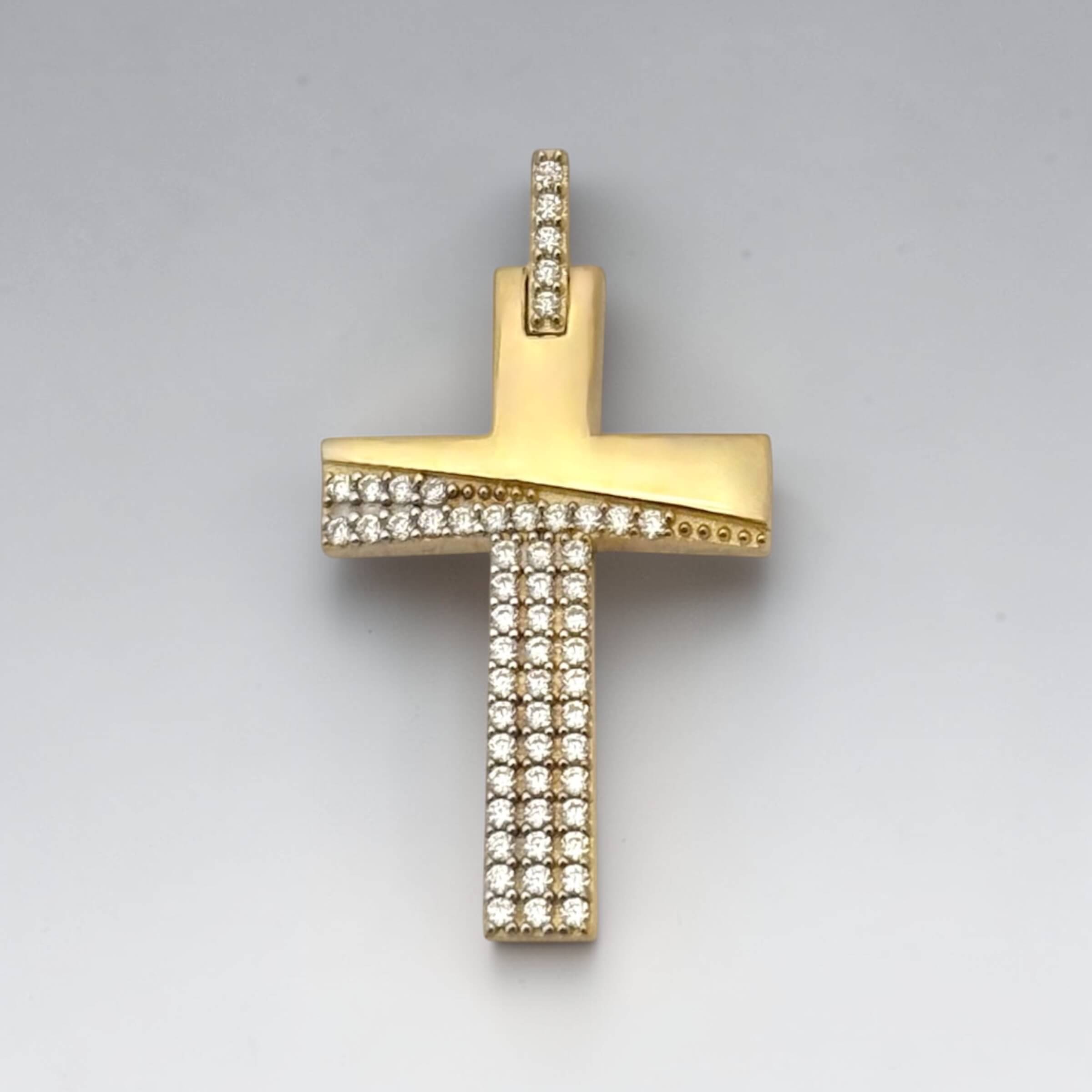 Χρυσός σταυρός βάπτισης για κορίτσι με πέτρες ζιργκόν διπλής όψης, 9κ