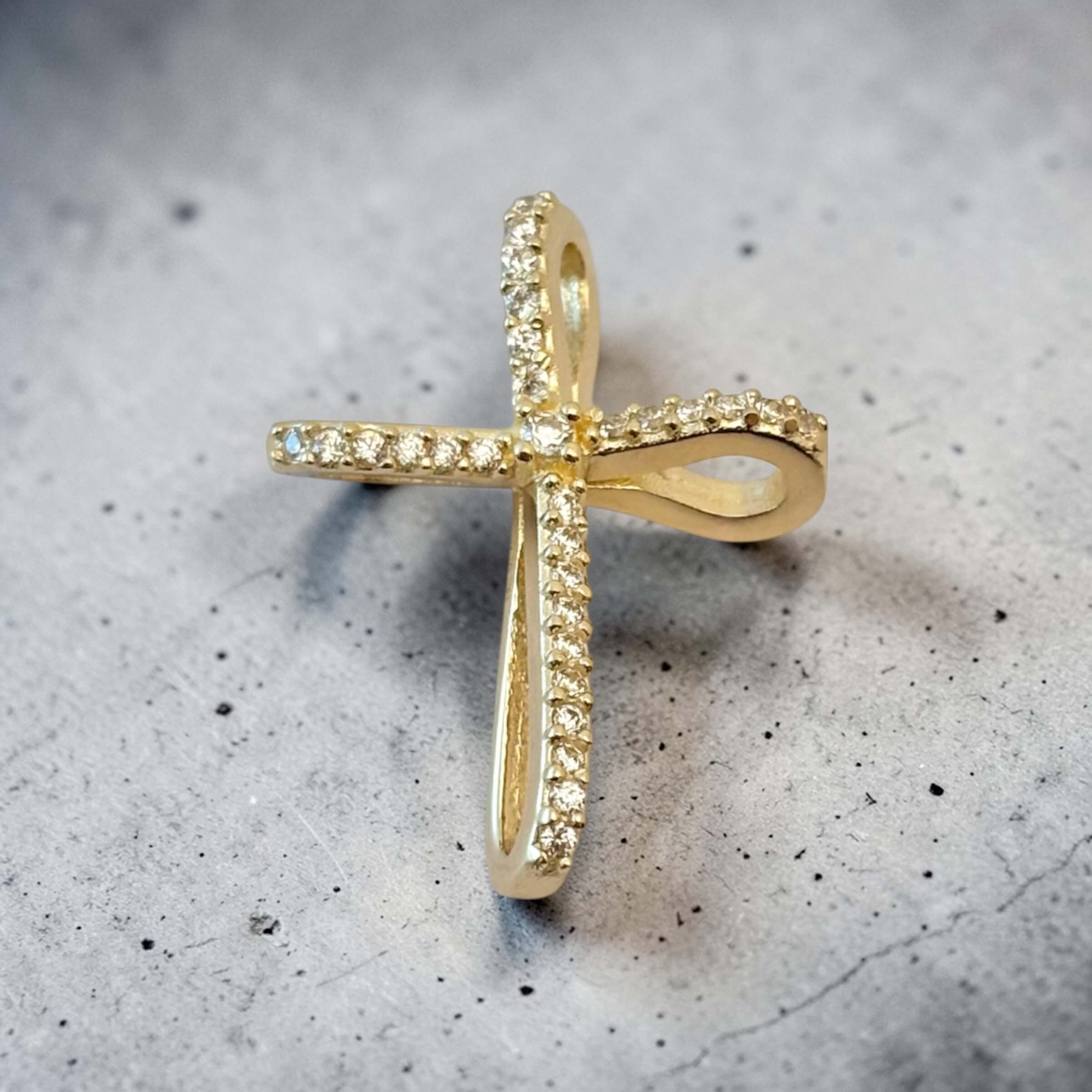 Χρυσός σταυρός βάπτισης για κορίτσι με πέτρες ζιργκόν σε ιδιαίτερο σχήμα , κ14