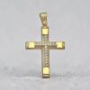 Χρυσός σταυρός βάπτισης για κορίτσι με συνδυασμό ματ και λουστράτης επιφάνειας με πέτρες ζιργκόν , κ14