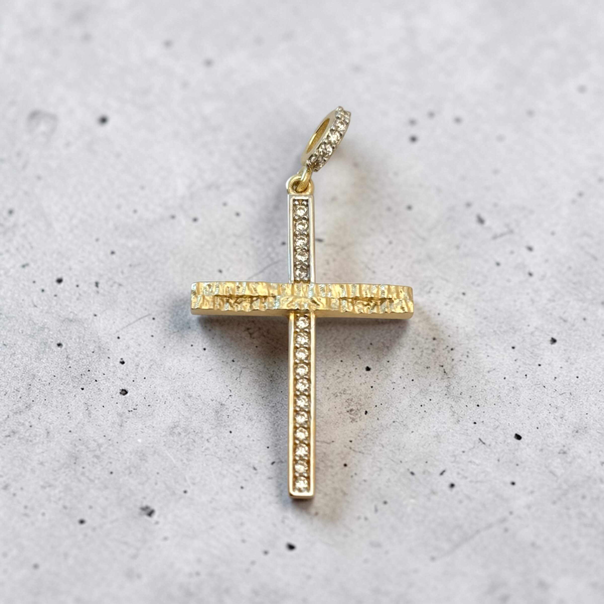 Χρυσός σταυρός βάπτισης για κορίτσι σκαλιστός με πέτρες ζιργκόν , κ14