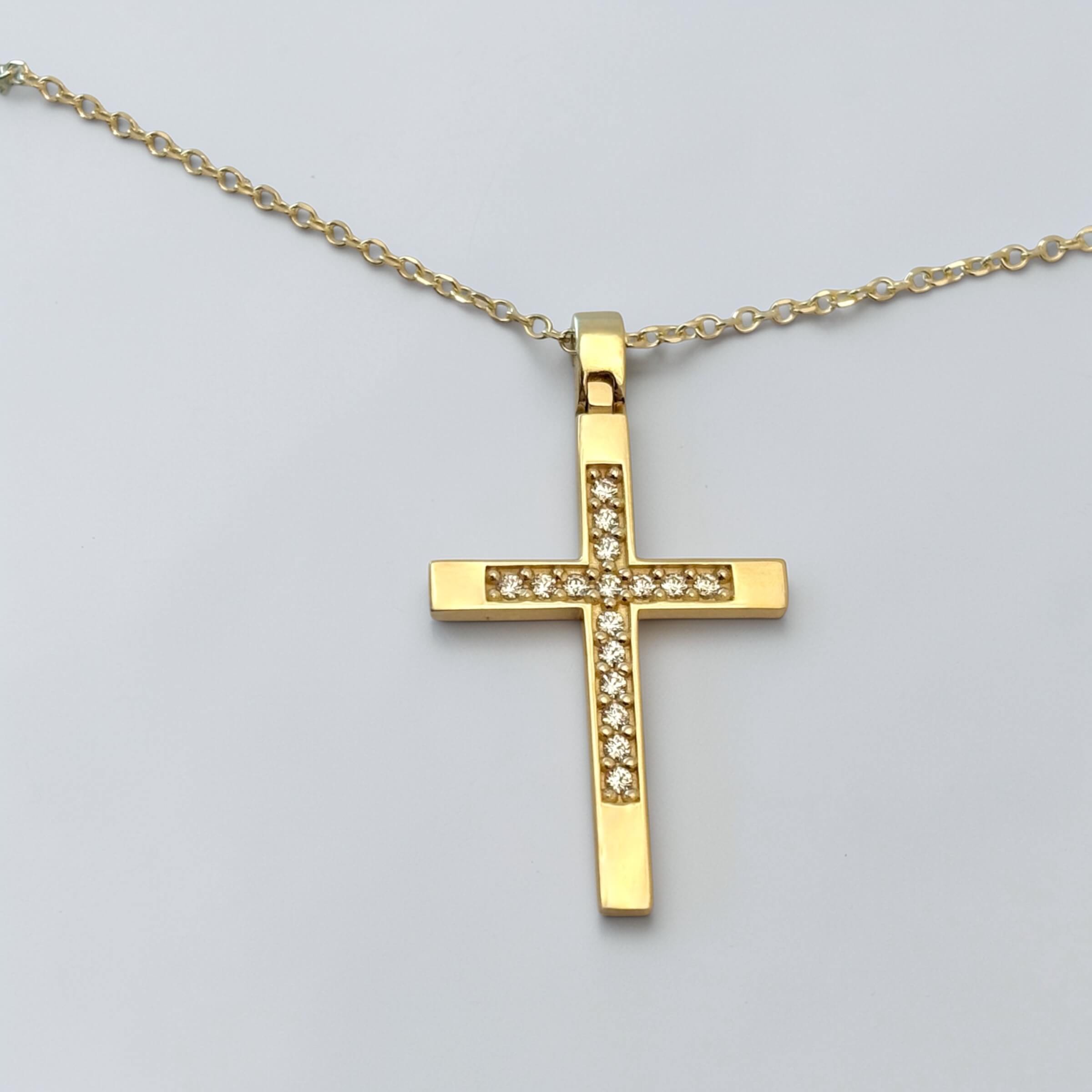 Χρυσός σταυρός βάπτισης με αλυσίδα για κορίτσι με πέτρες ζιργκόν , κ14