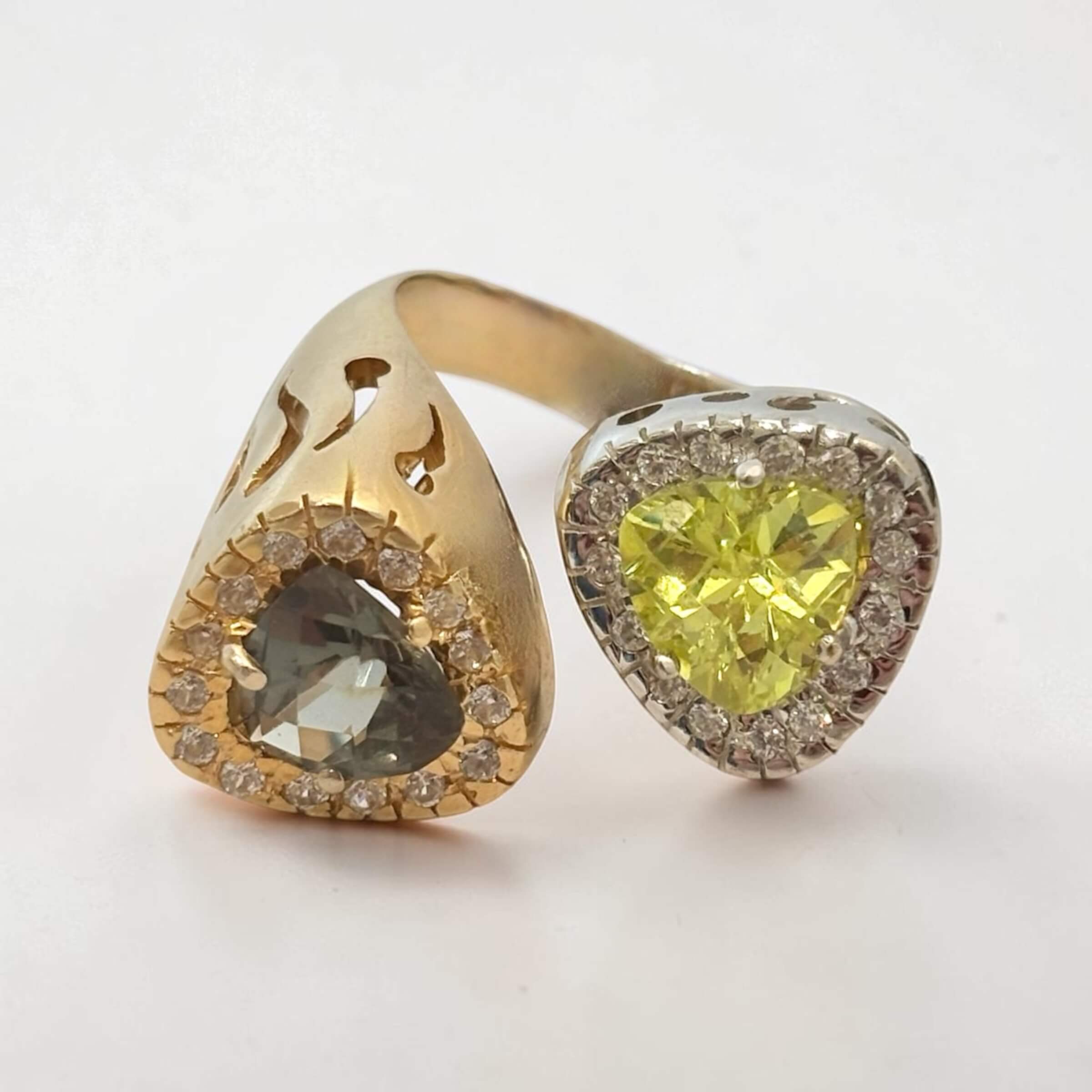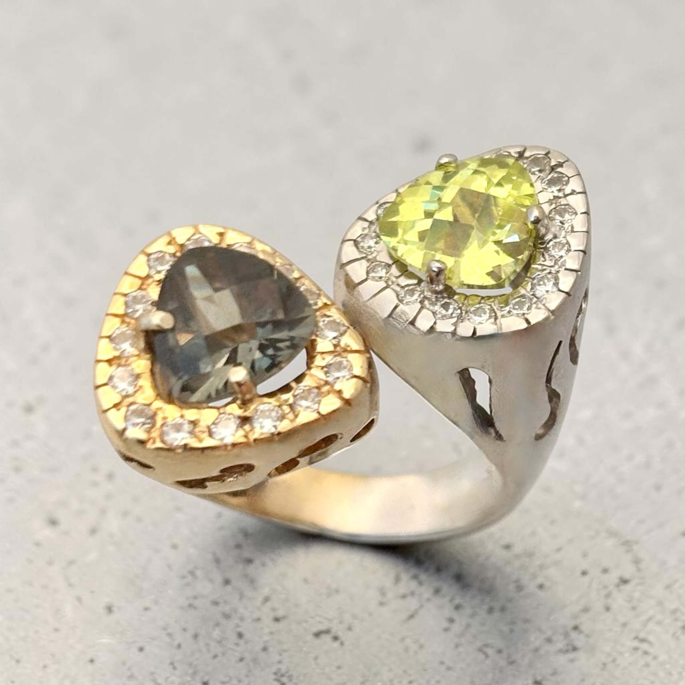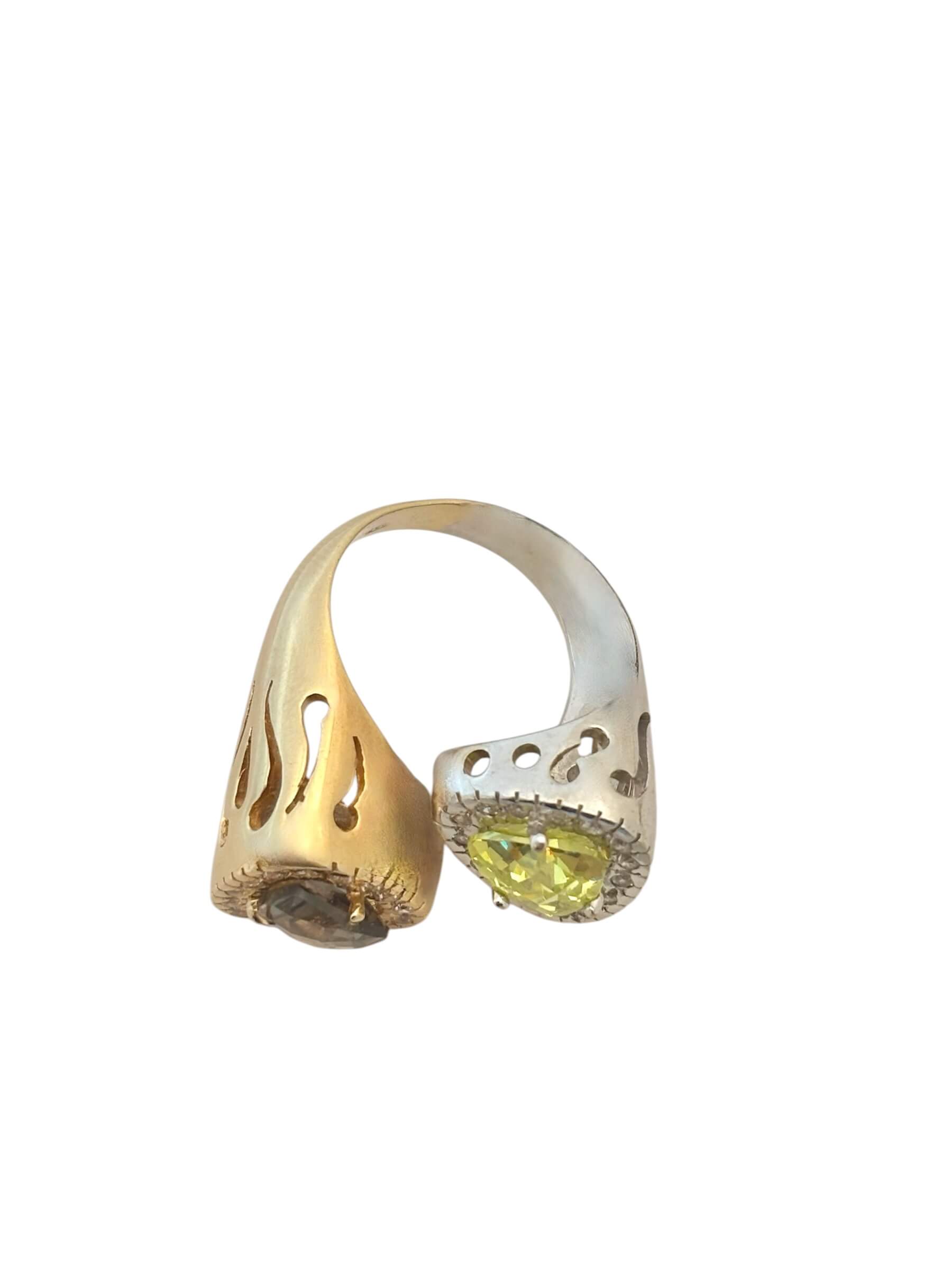 Δίχρωμο δαχτυλίδι με χρωματιστές πέτρες ζιργκόν , κ14