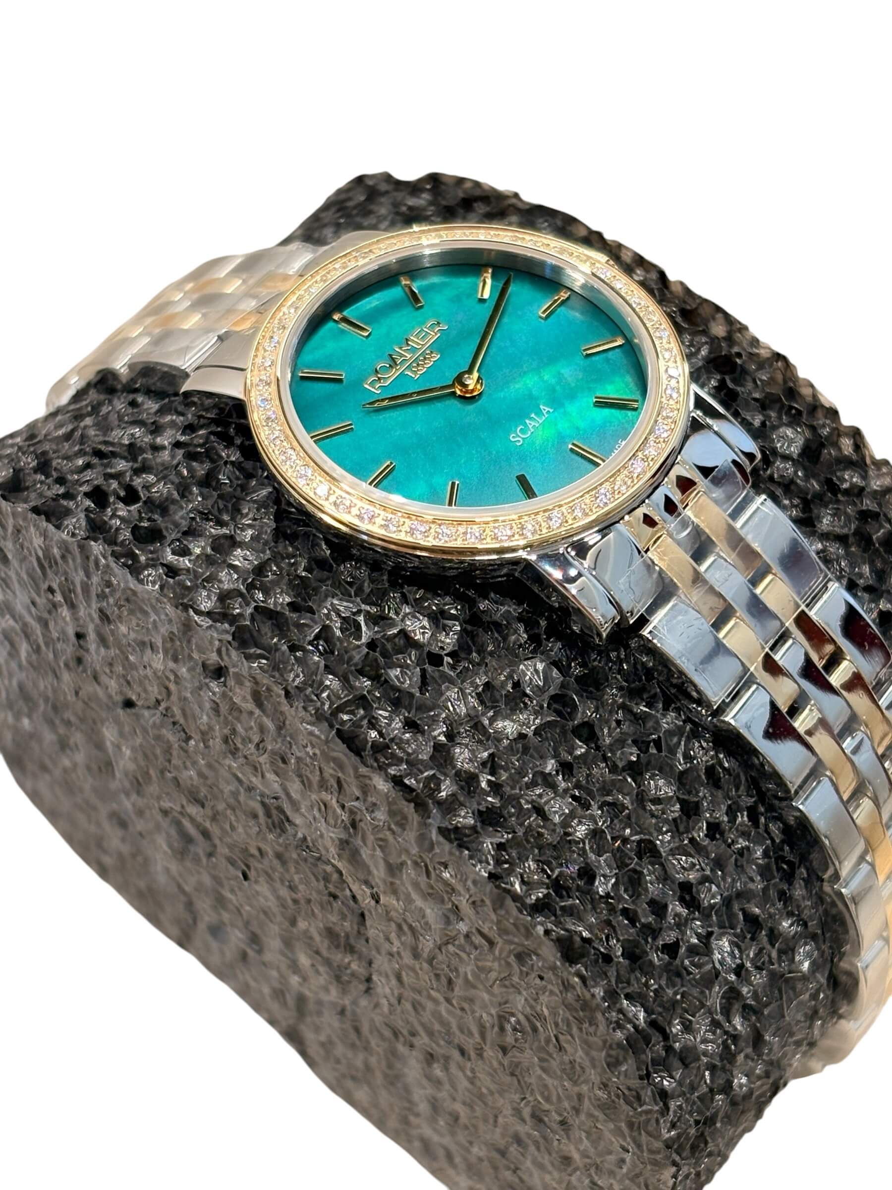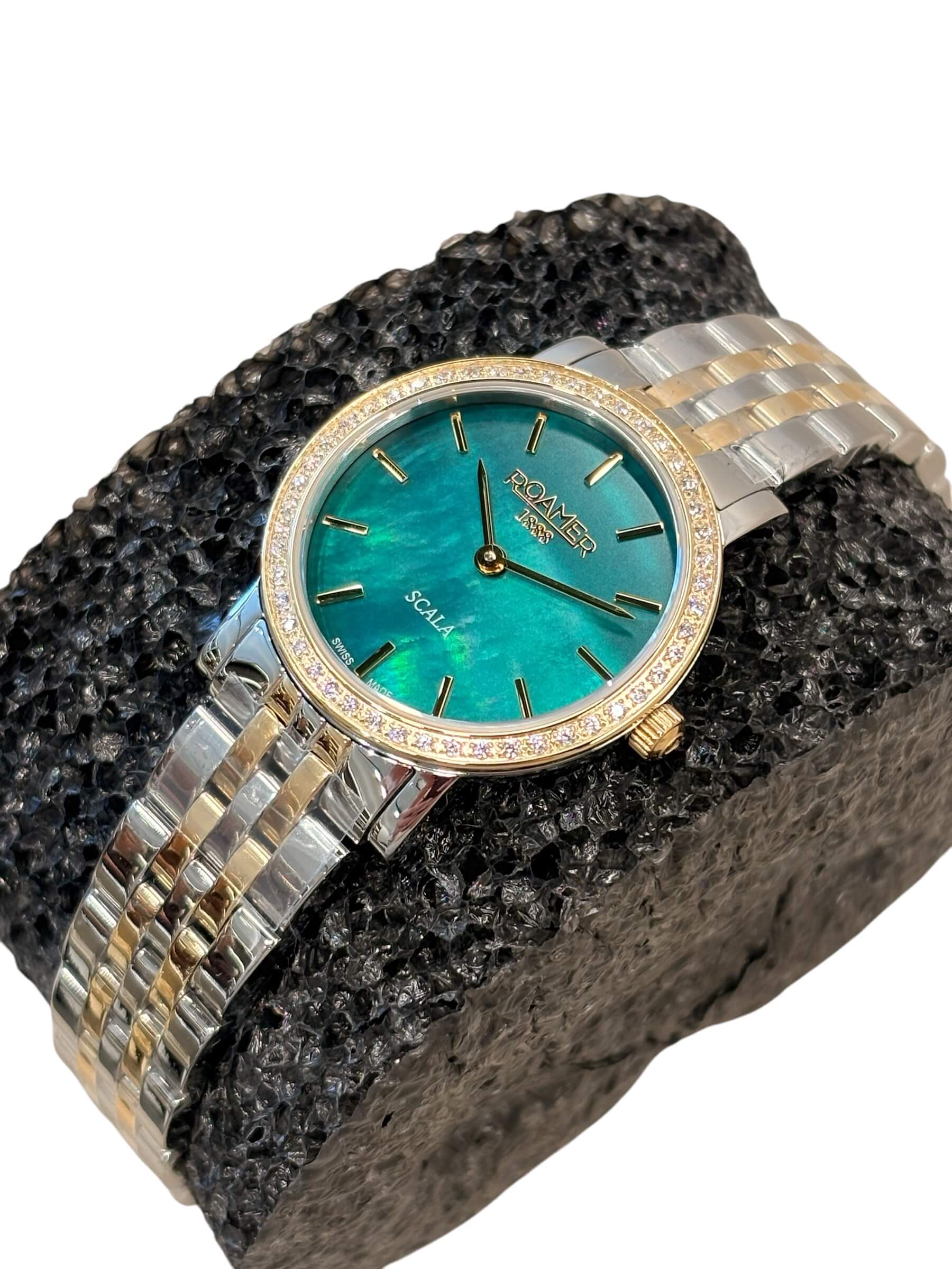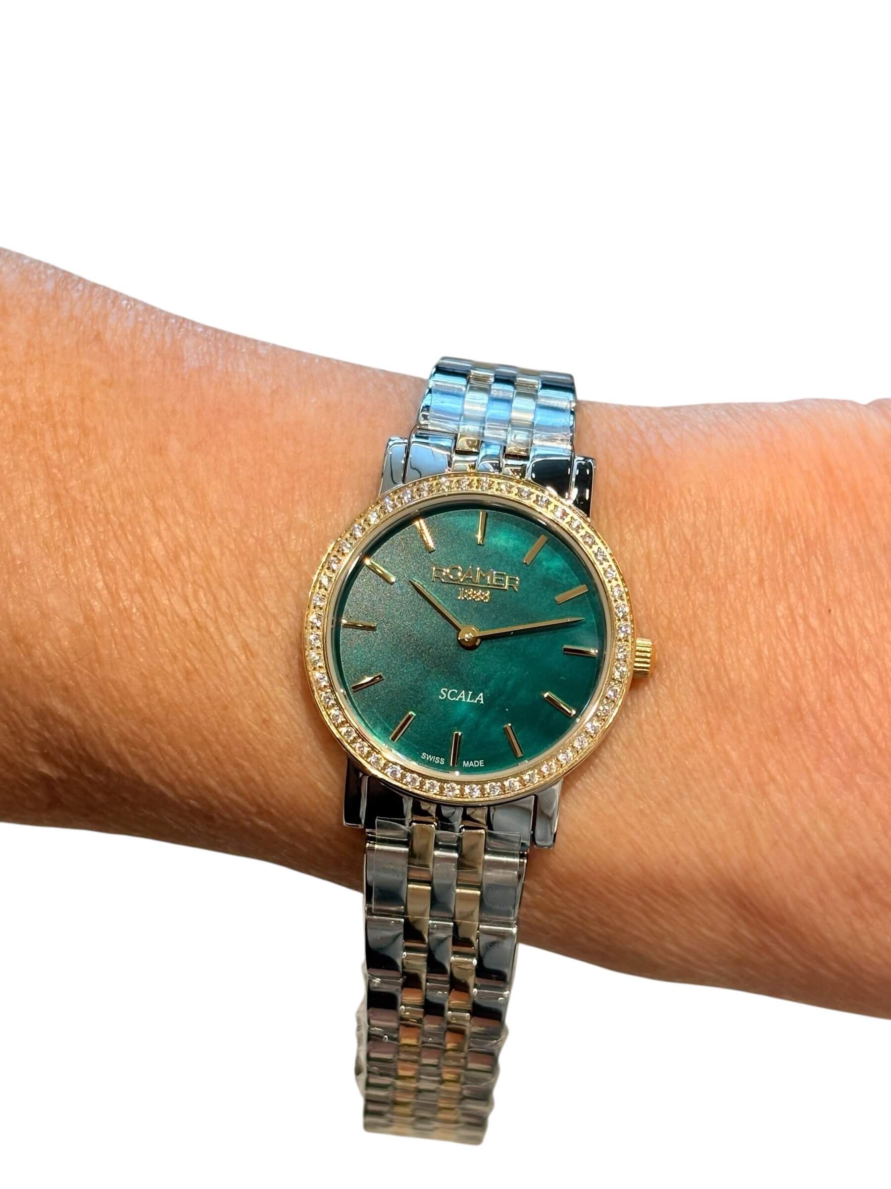 Γυναικείο ρολόι Roamer με δίχρωμο ατσάλινο μπρασελέ και σμαραγδί καντράν