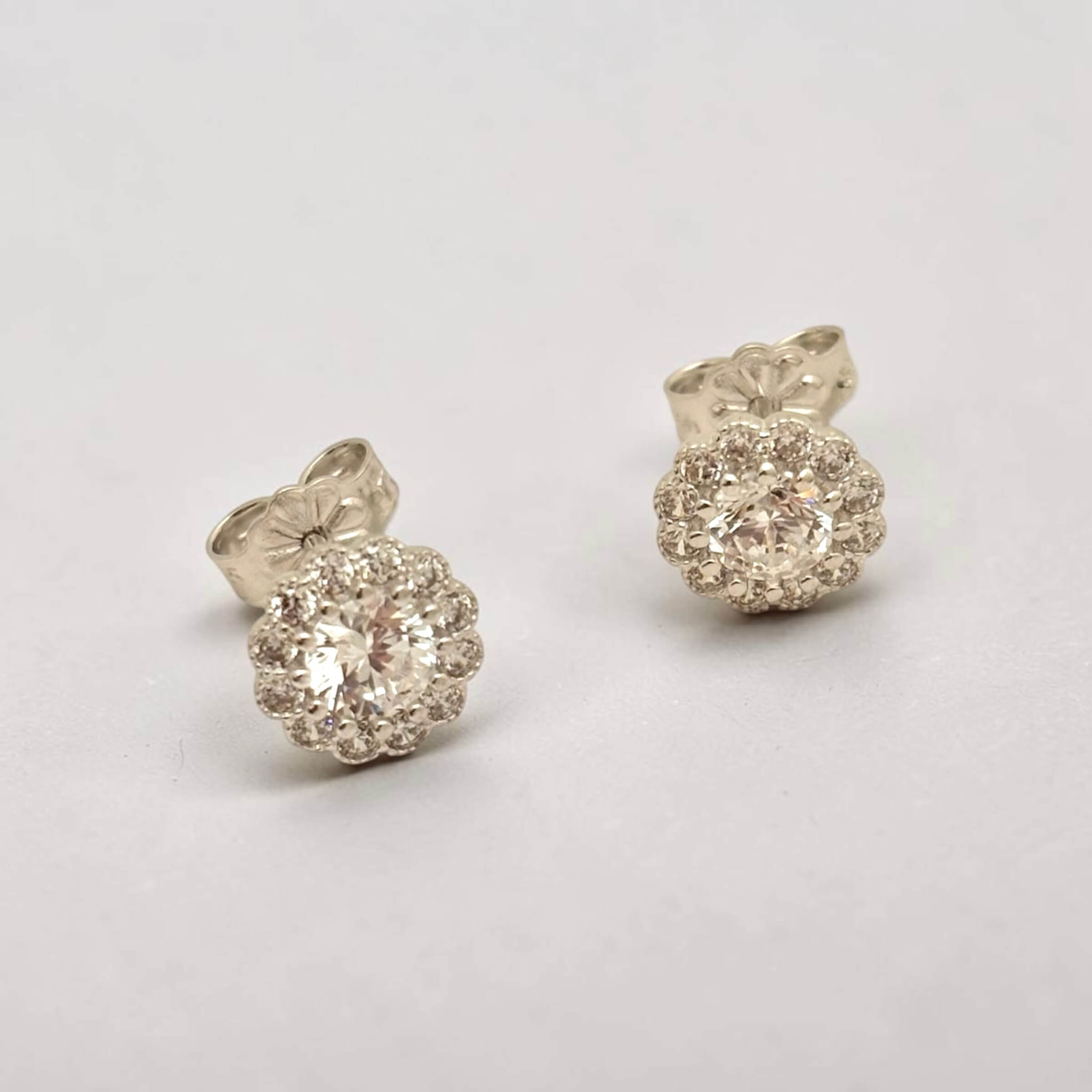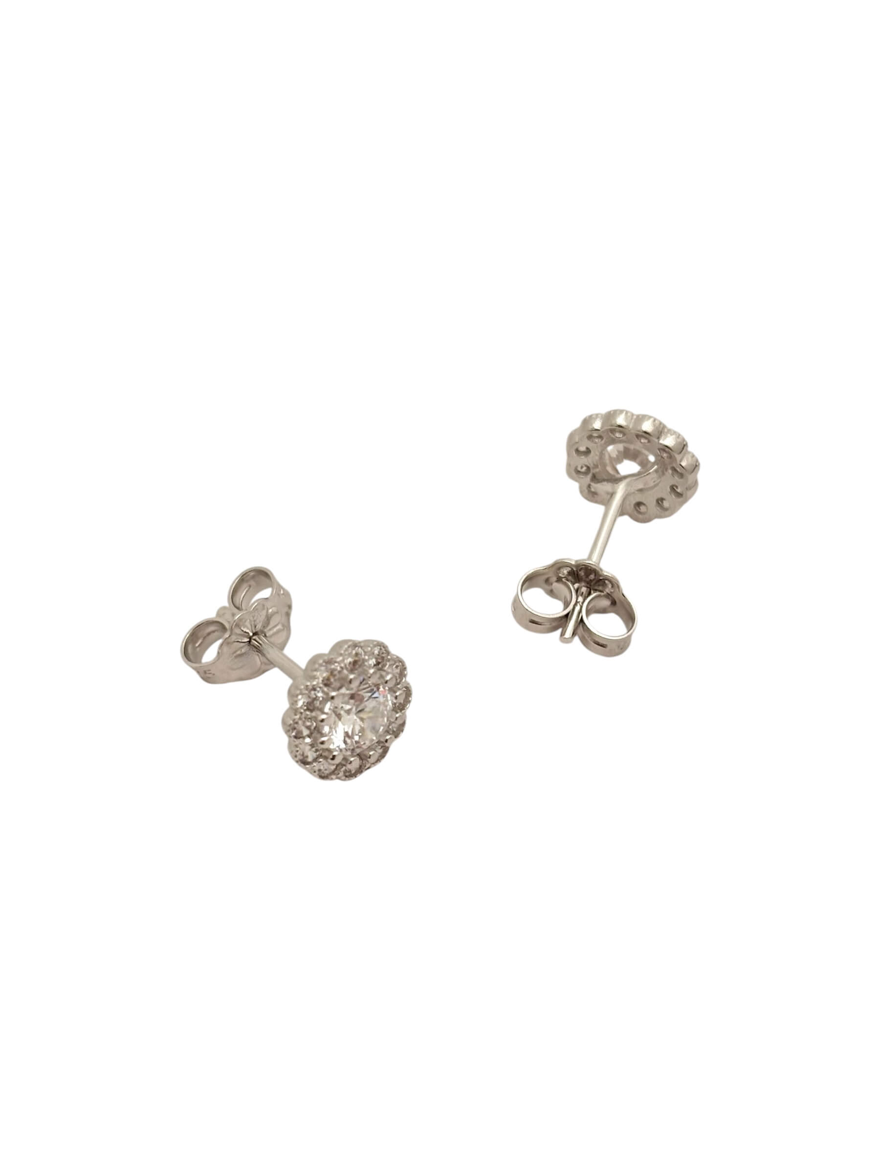 Λευκόχρυσα σκουλαρίκια γυναικεία καρφωτά στο αυτί σε σχήμα λουλουδιού με πέτρες ζιργκόν , κ14