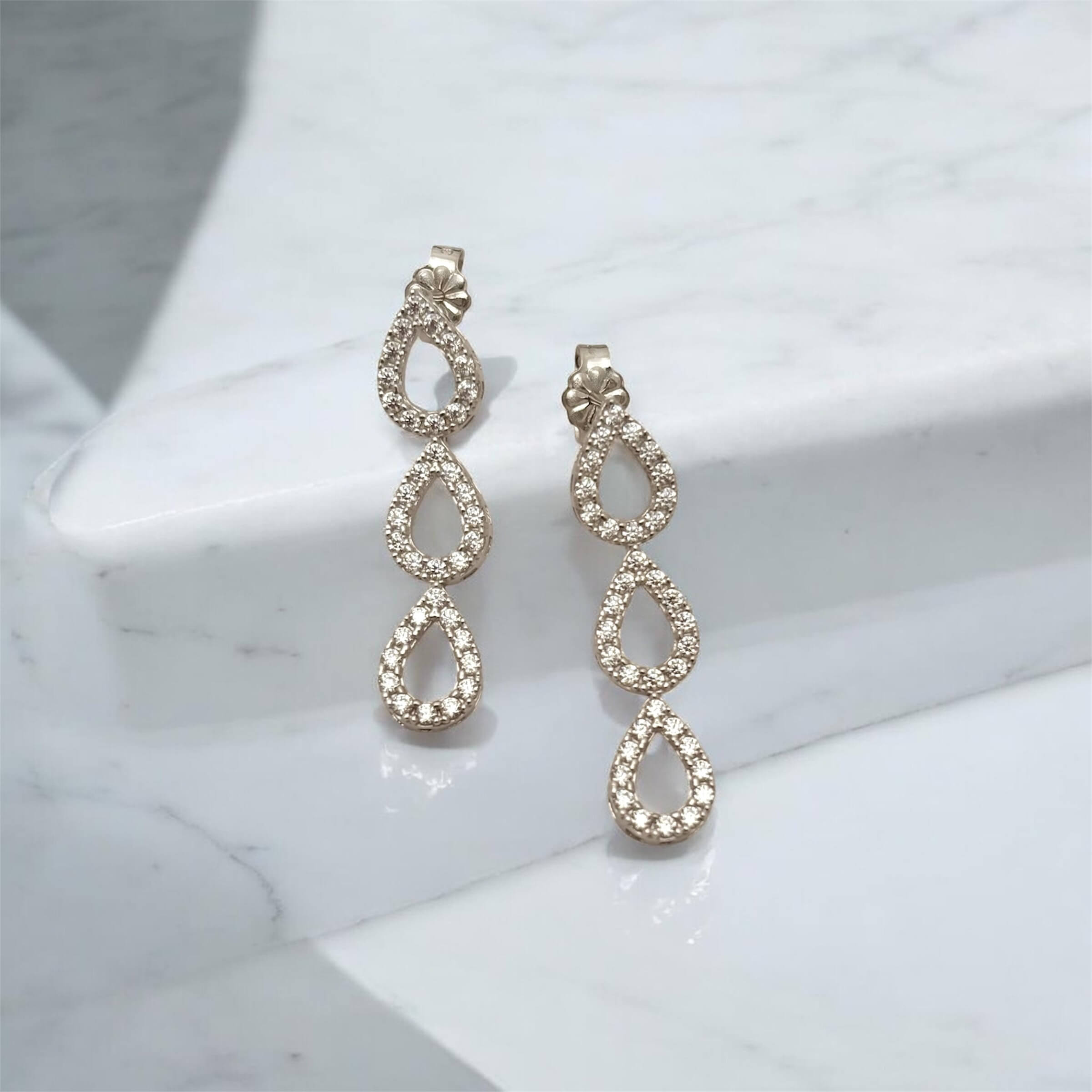 Λευκόχρυσα σκουλαρίκια κρεμαστά στο αυτί με πέτρες ζιργκόν , κ9