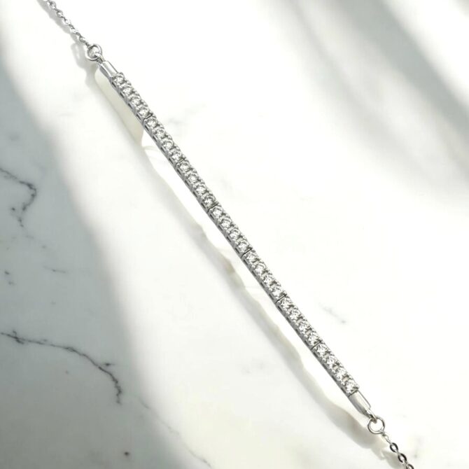 Λευκόχρυσο γυναικείο βραχιόλι τύπου Ριβιέρα με πέτρες ζιργκόν , κ14