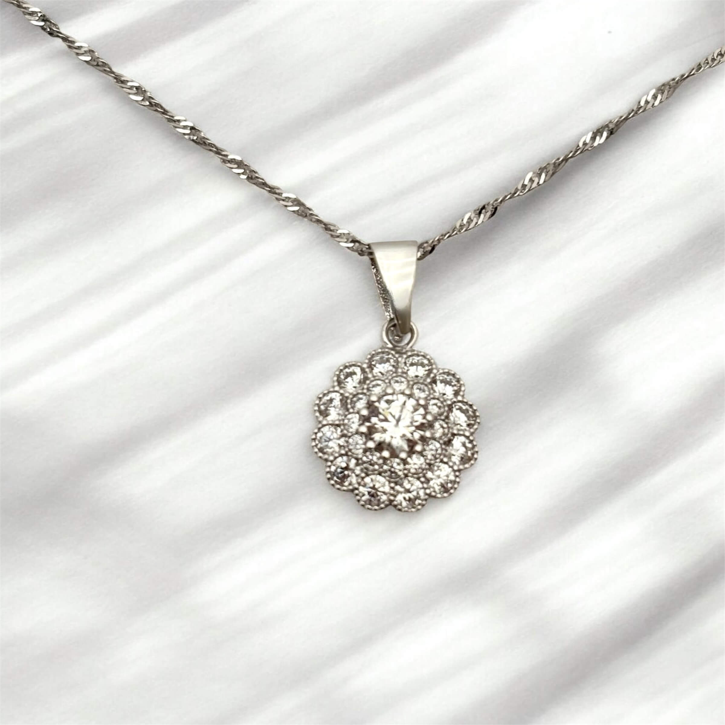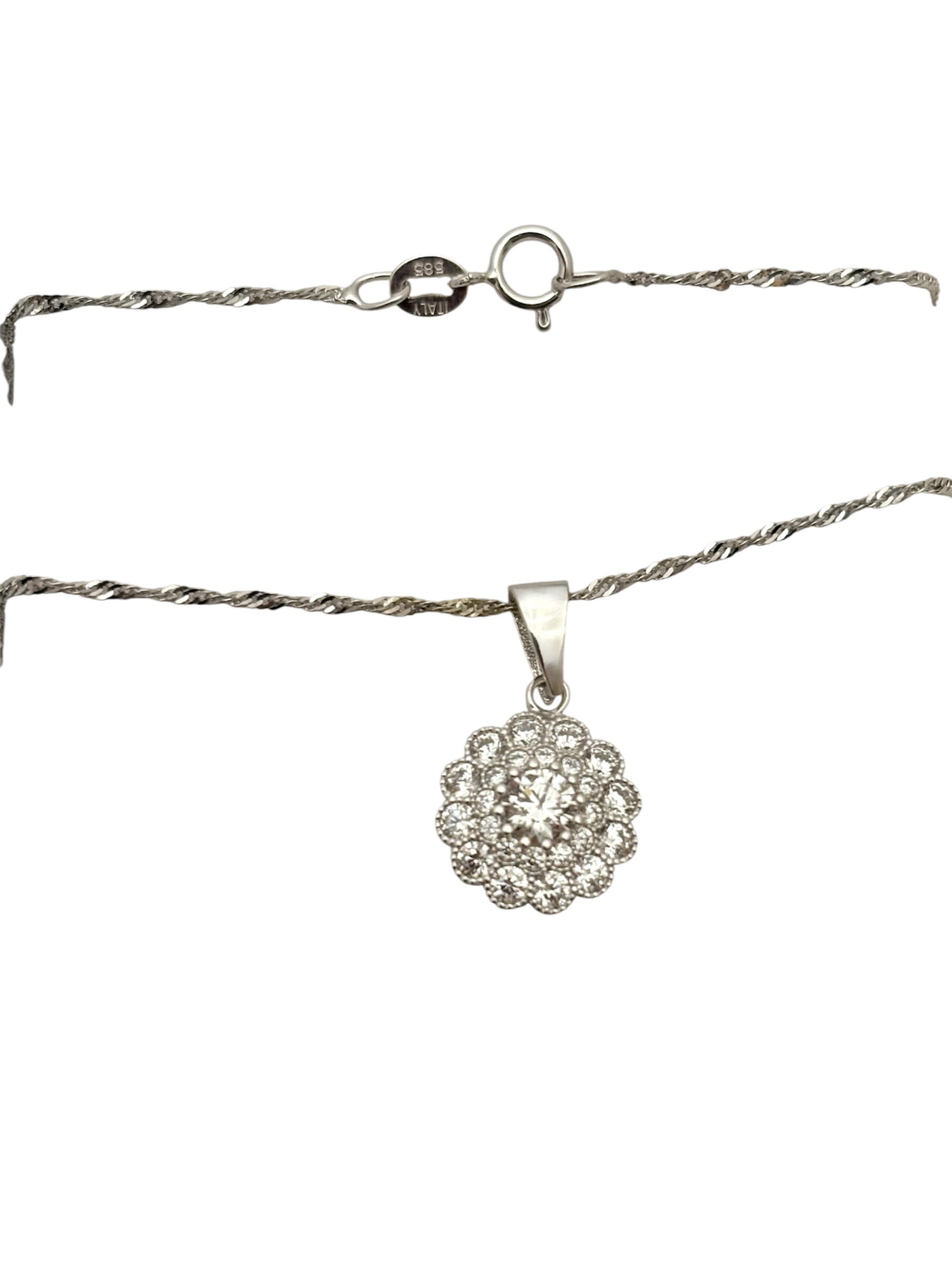 Λευκόχρυσο μενταγιόν σε σχήμα λουλουδιού με πέτρες ζιργκόν, κ14