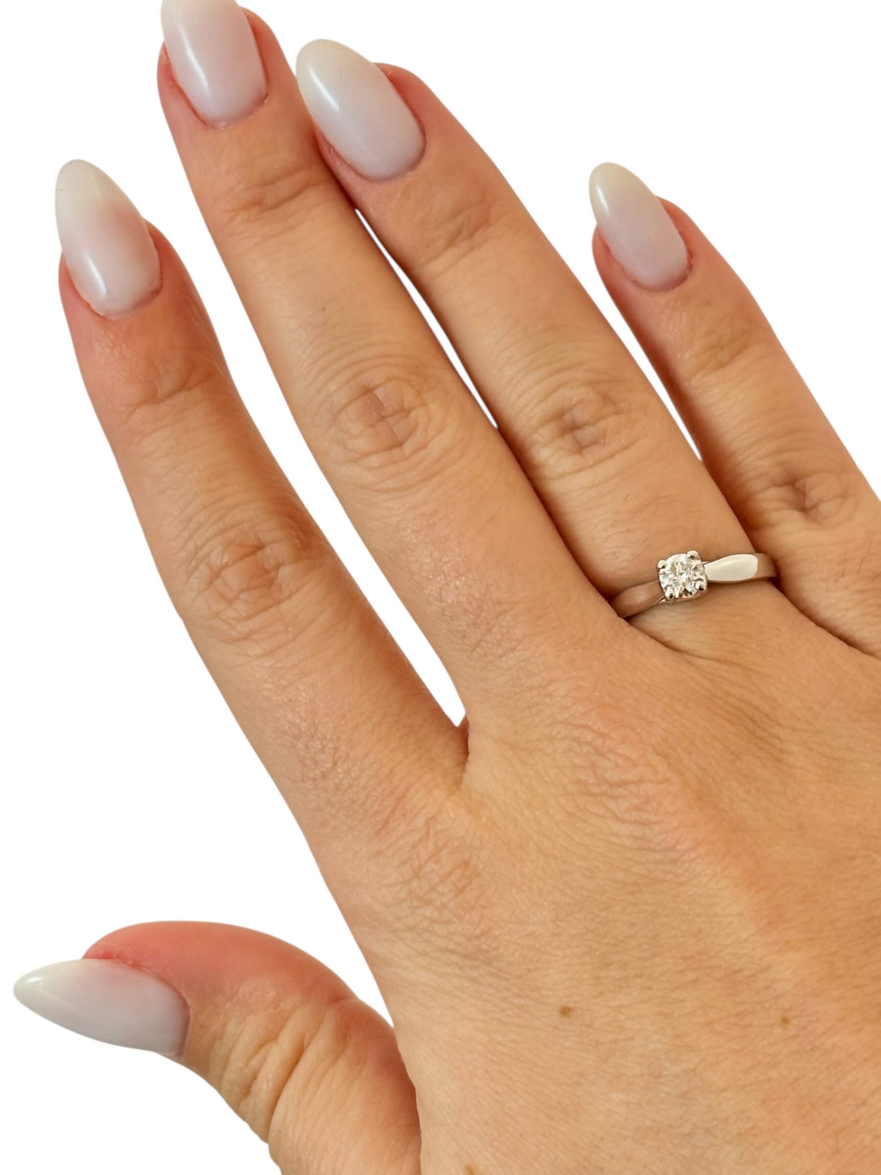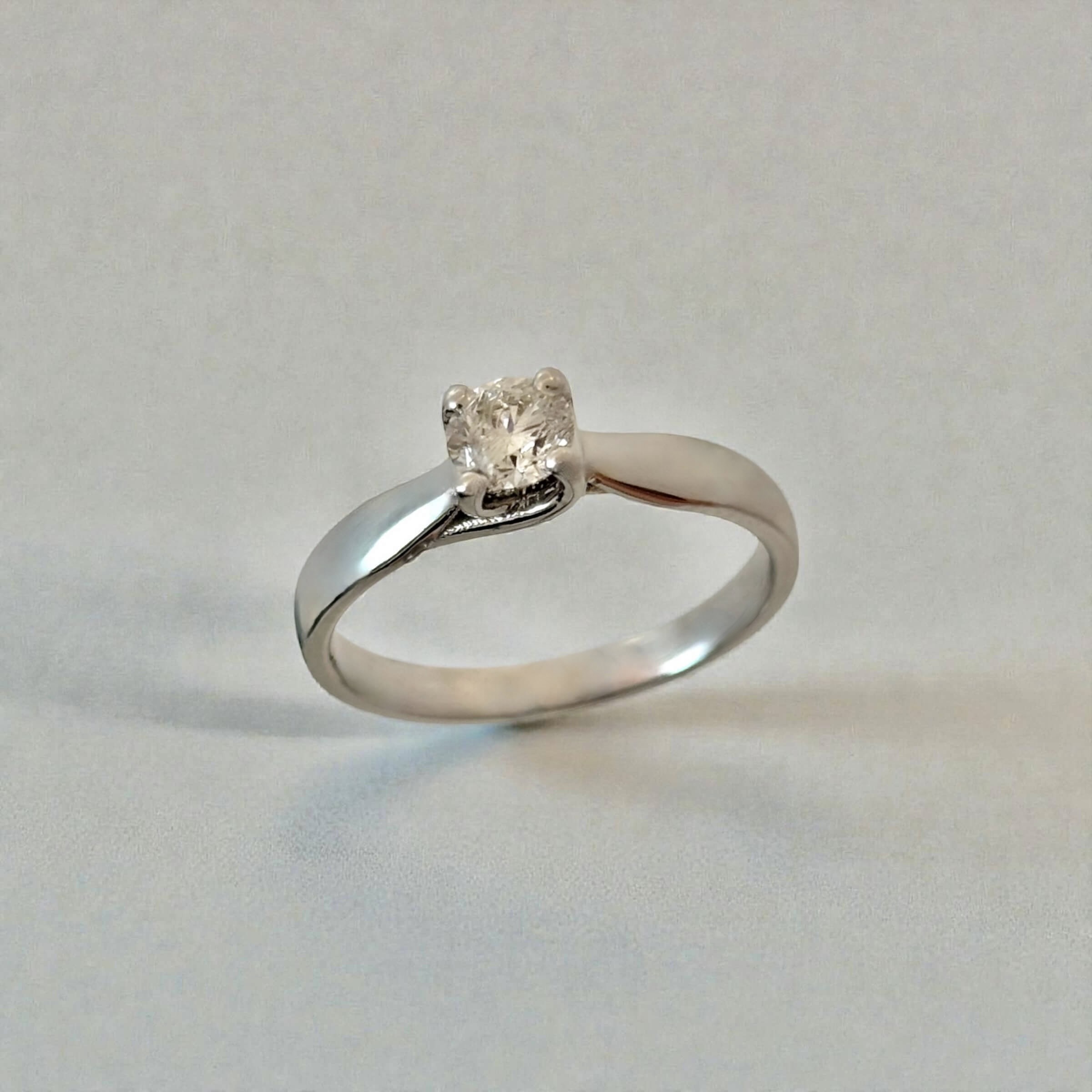Λευκόχρυσο μονόπετρο δαχτυλίδι με μπριγιάν 0,35ct , κ18. Το χρώμα της πέτρας είναι Η και η καθαρότητά της είναι VS1