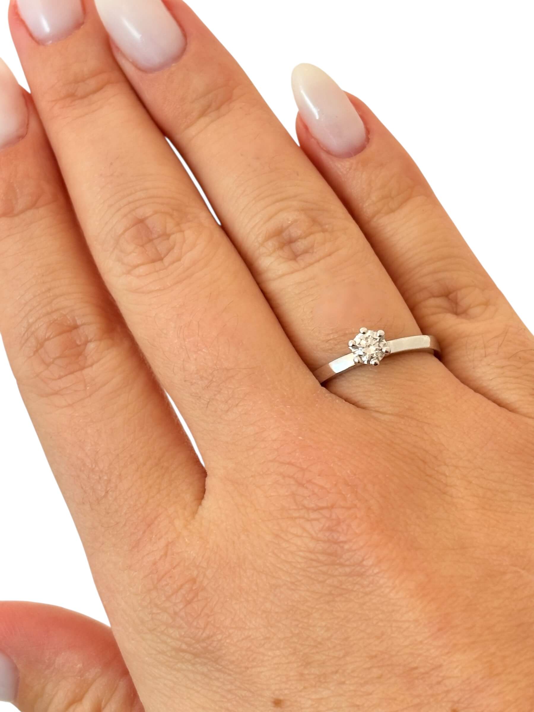 Λευκόχρυσο μονόπετρο δαχτυλίδι με μπριγιάν 0,35ct , κ18. Το χρώμα της πέτρας είναι H και η καθαρότητά της είναι VS1