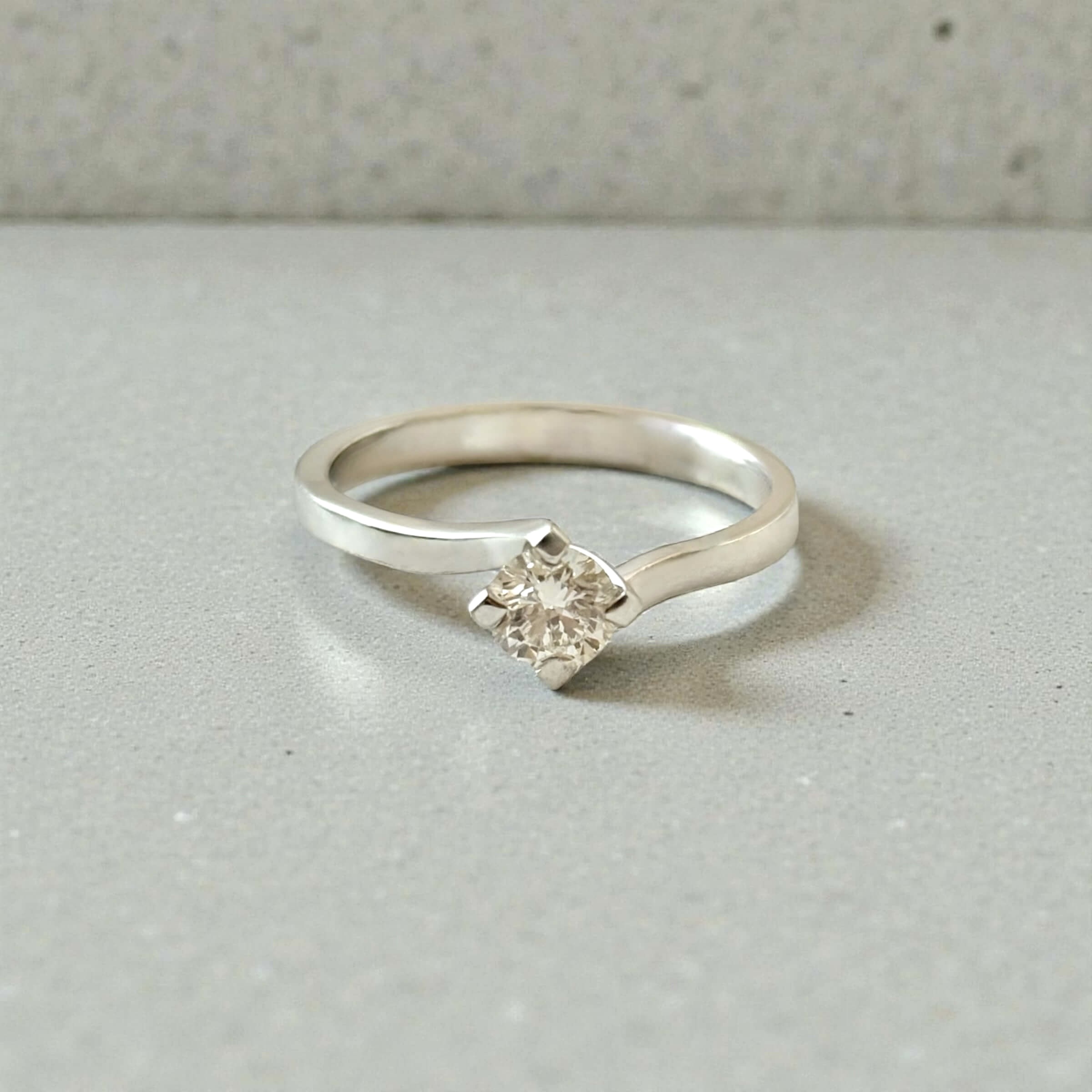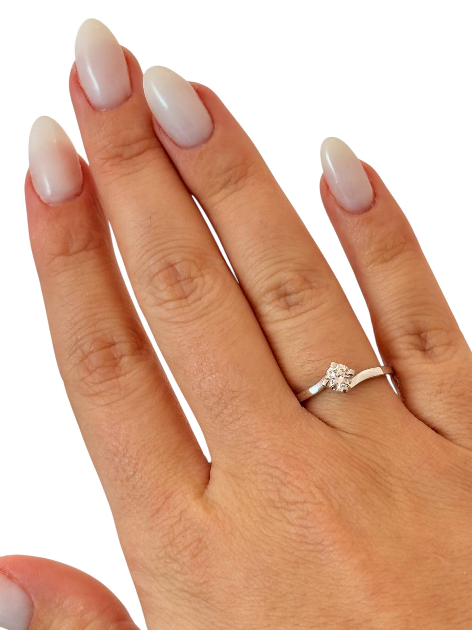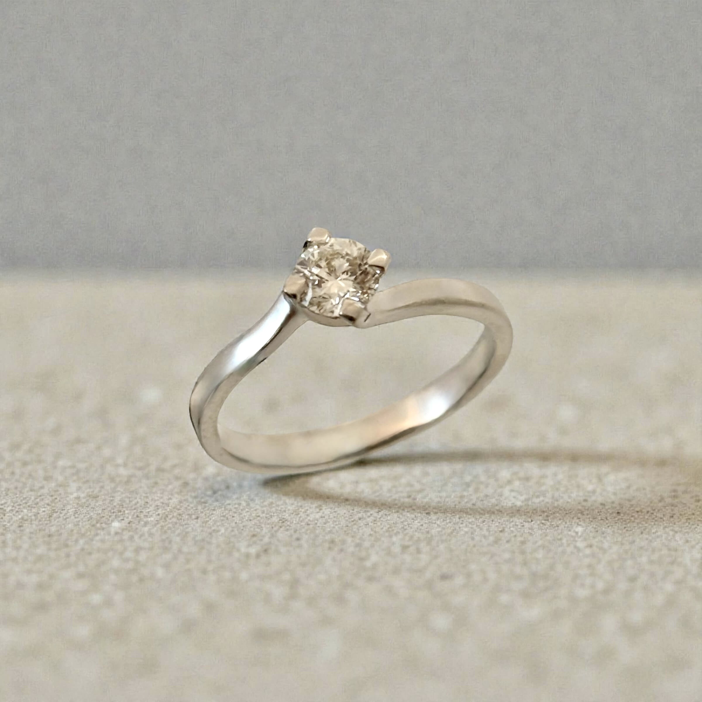 Λευκόχρυσο μονόπετρο δαχτυλίδι με μπριγιάν 0,40ct στυλ φλόγα , κ18