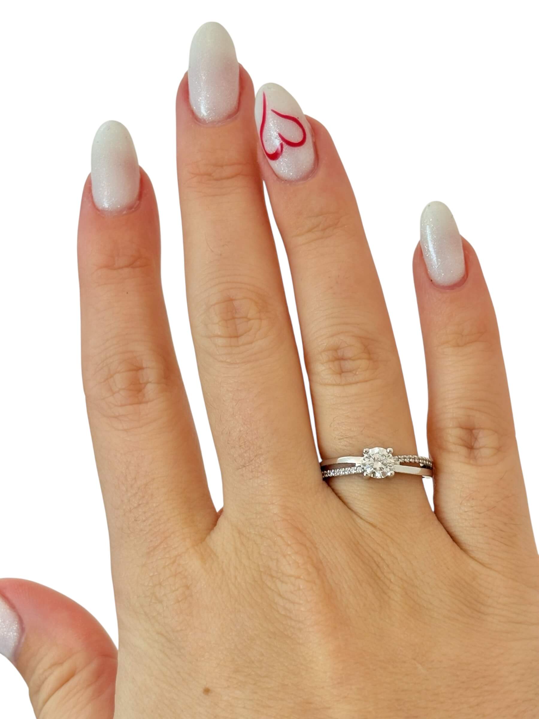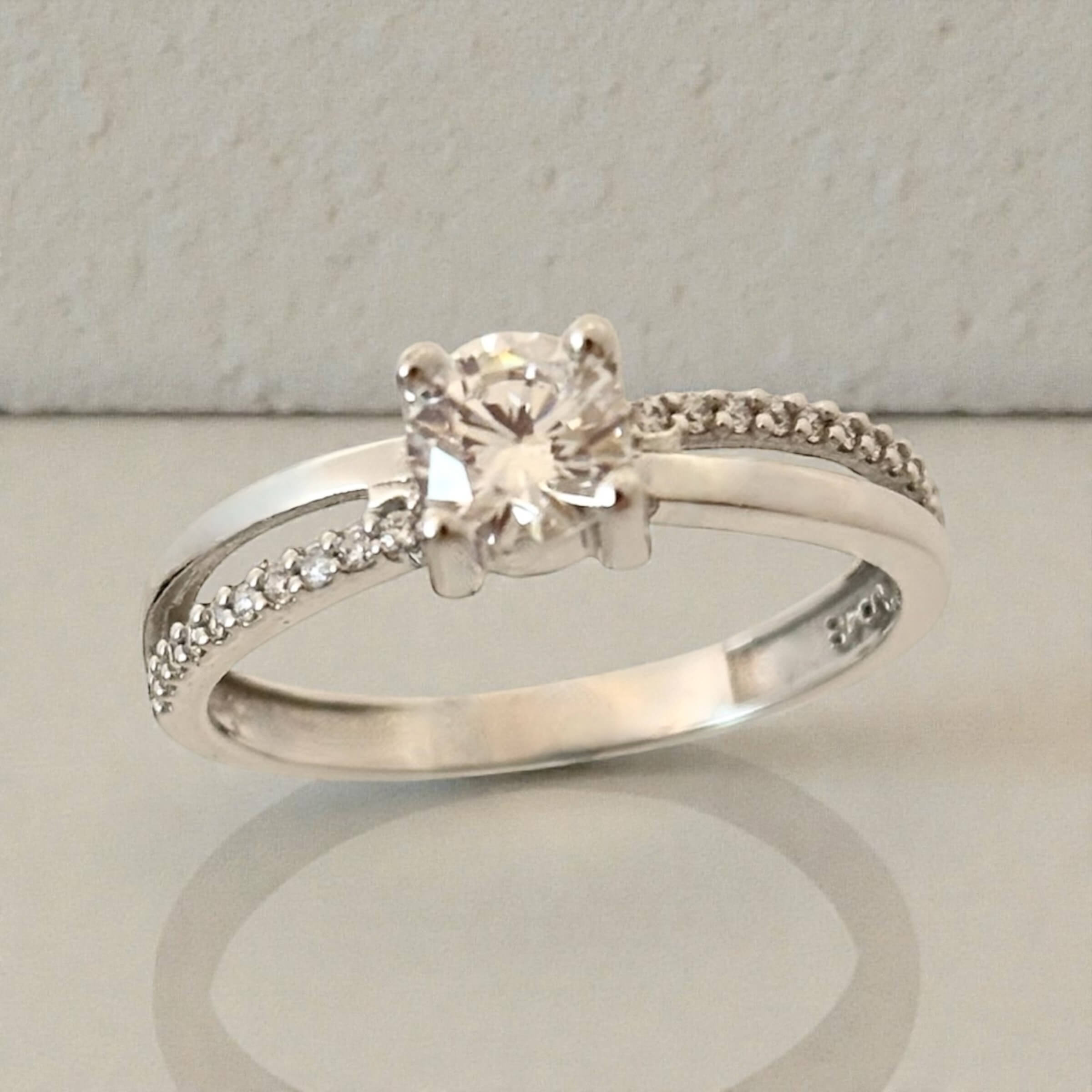• Λευκόχρυσο μονόπετρο δαχτυλίδι με κεντρική και πλαϊνές πέτρες ζιργκόν  , κ9